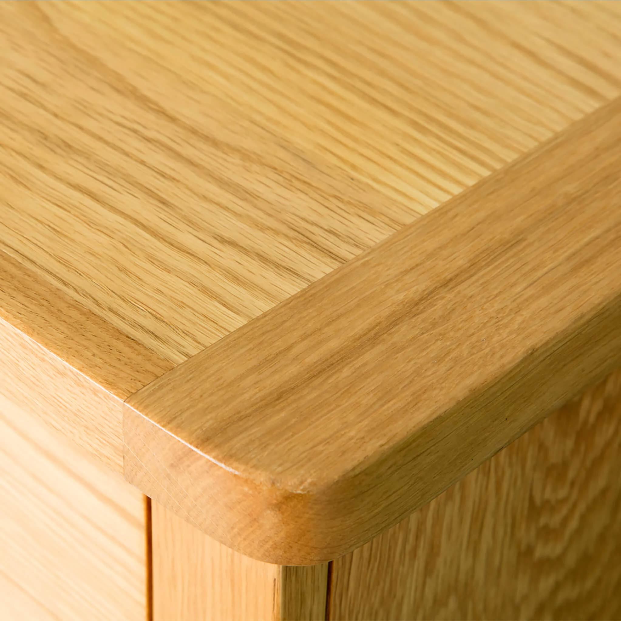 The Hampshire Oak range has been created with our manufacturers exclusively for Roseland Furniture due to customer demand. With the plinth base, this design sets the Hampshire Oak range apart from any other we offer. Finished in a satin lacquer with contemporary oval handles, it is suitable for any home and will add a classic design touch to any room.