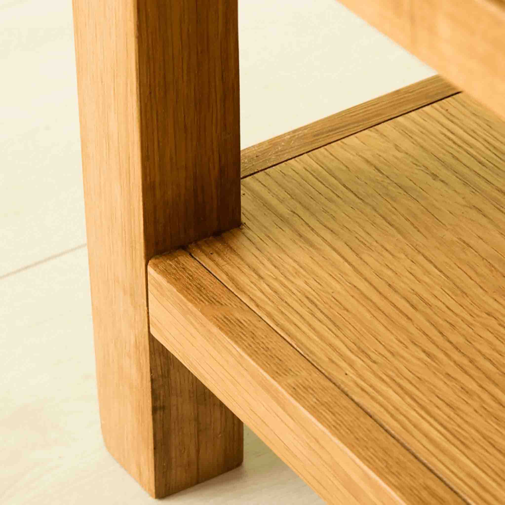 - This modern lamp table is constructed from real oak and solid wood and features beautiful exposed tenon joints.
