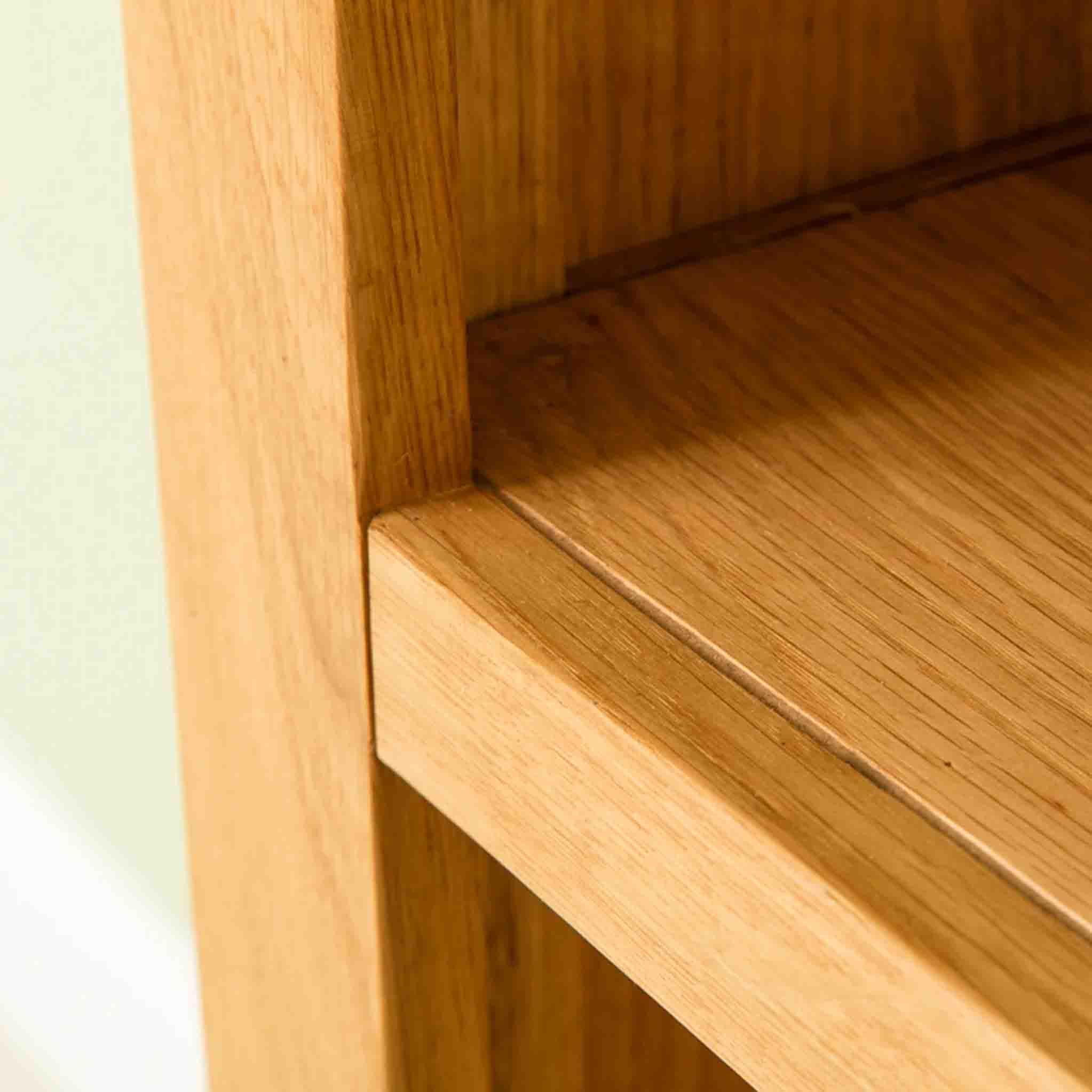 The Abbey Waxed oak range offers this beautiful modern low bookcase. Crafted in quality oak and featuring solid pine for the internal sections. The bookcase provides the perfect solution to storing your collection of books. Featuring no overhang, its low solid structure adds to its modern character. It features a subtle warm finish and makes the perfect addition to the home.