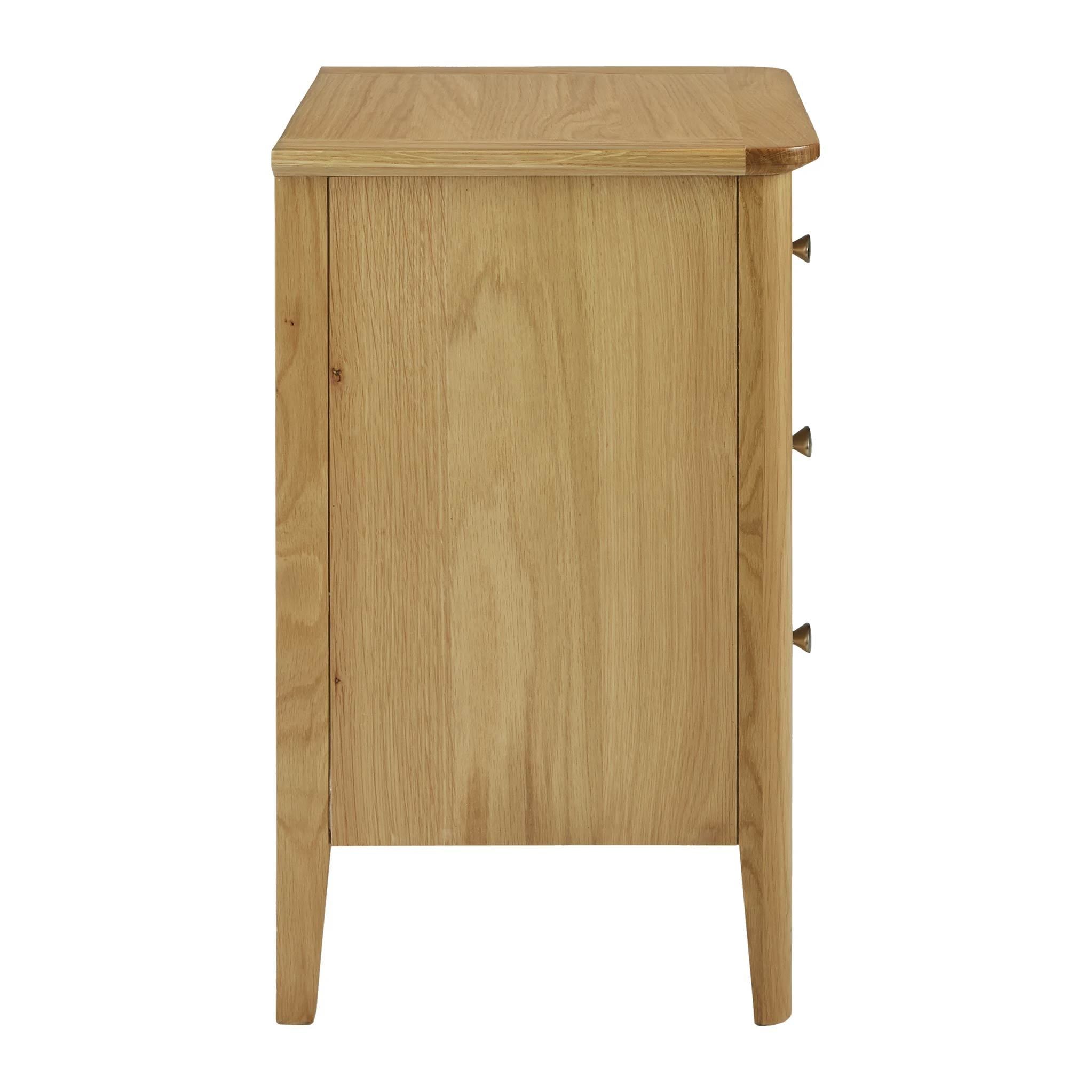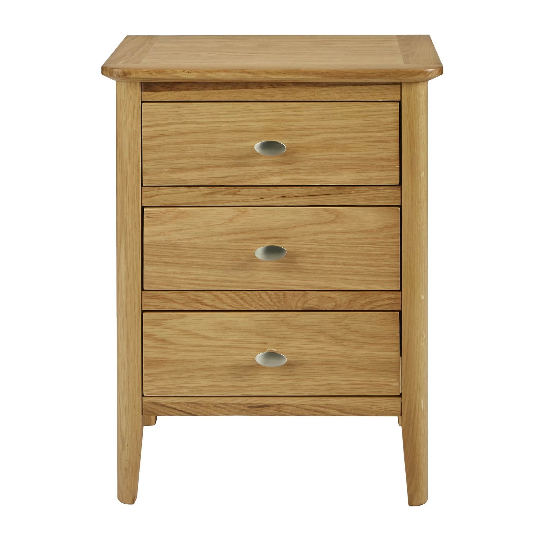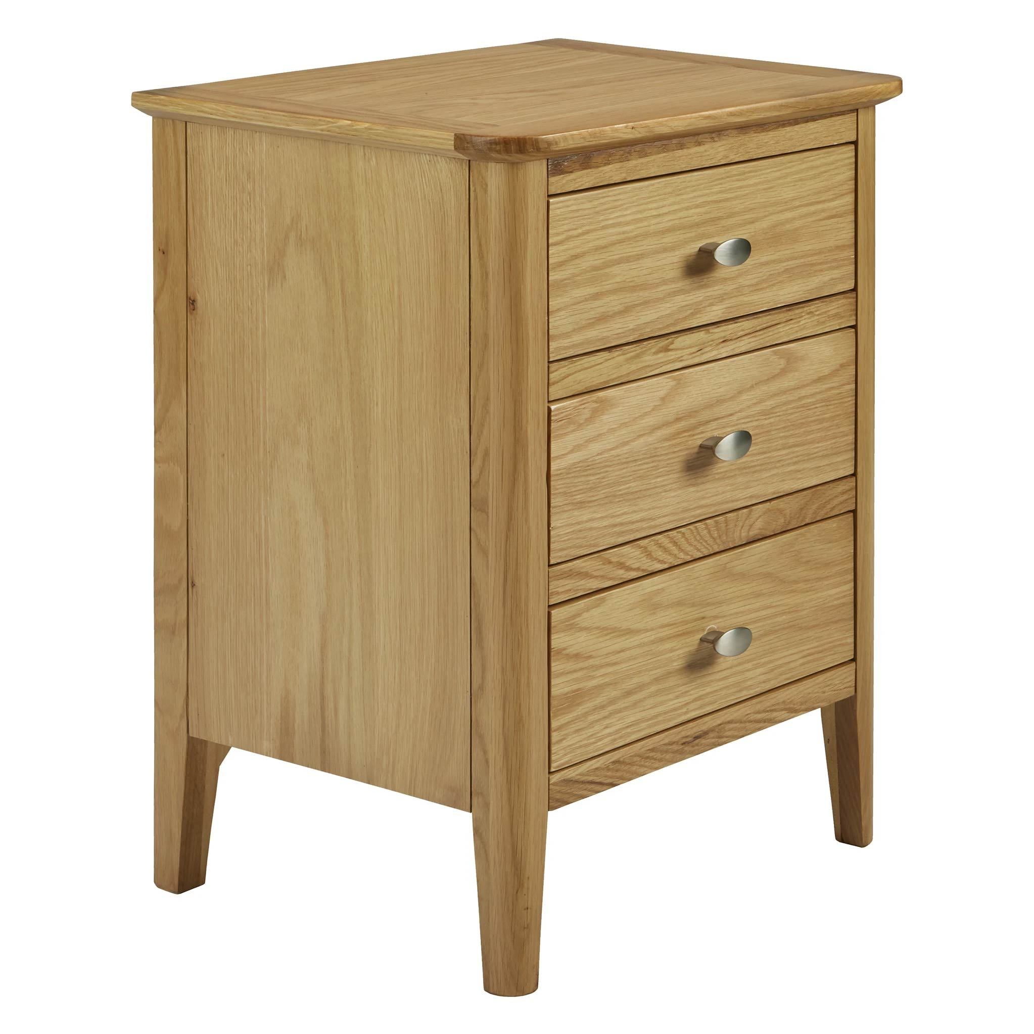 This three drawer bedside cabinet is an attractive addition to any room. The drawers are spacious and have dovetail joints with solid metal handles. Quality you just don't expect at this price; the light oak with clear lacquer finish is easy to maintain and works well with items from many of the other ranges.