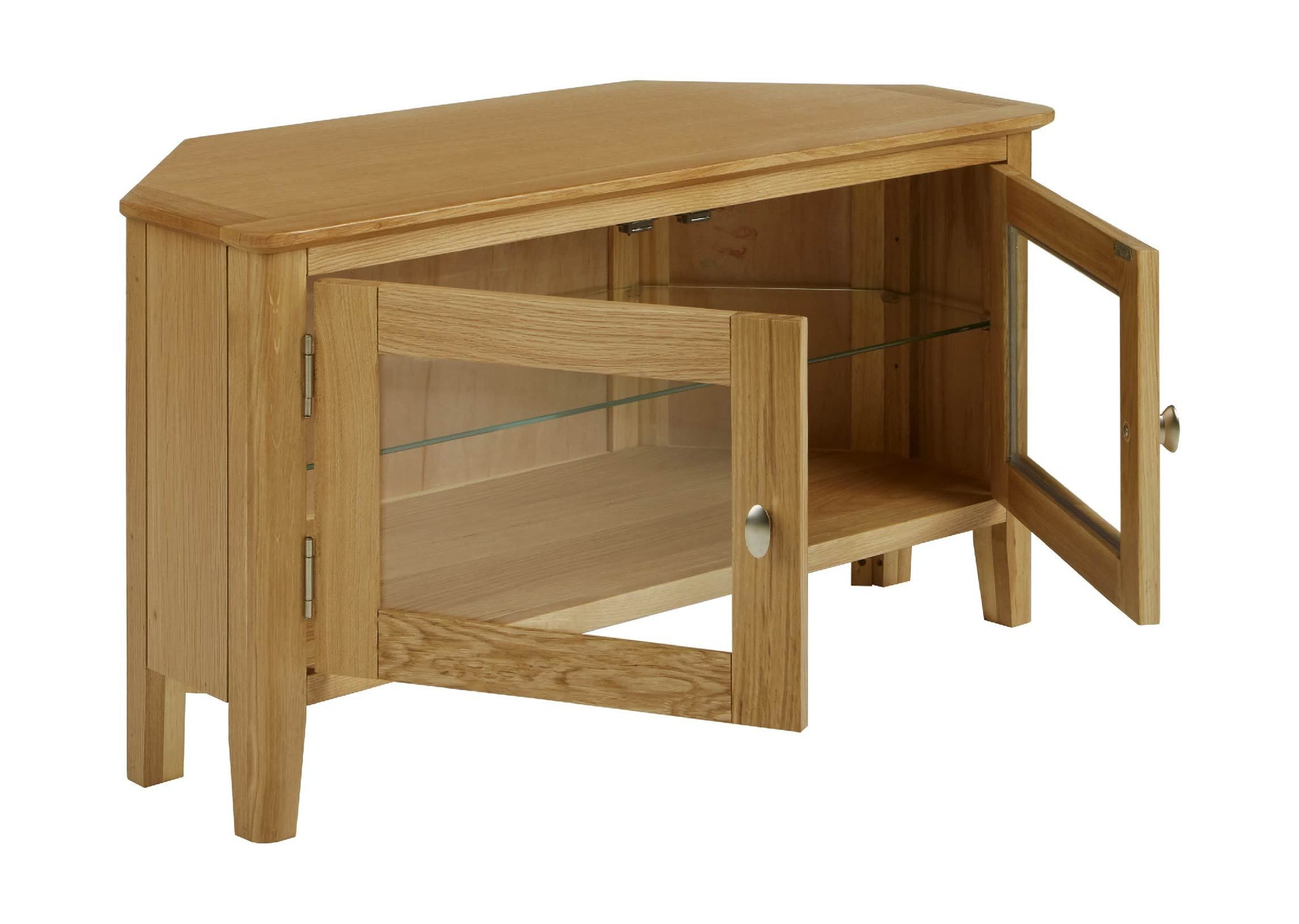 The perfect TV stand for when space is at a premium or you only need a smaller TV stand. Finished in a low maintenance lacquer with simple metal handles and with stunning glass doors and shelf. Featuring two large self inside ideal for storing a Sky box or DVD player, and the large whole in the back of the unit is perfect for tidying away the cables.