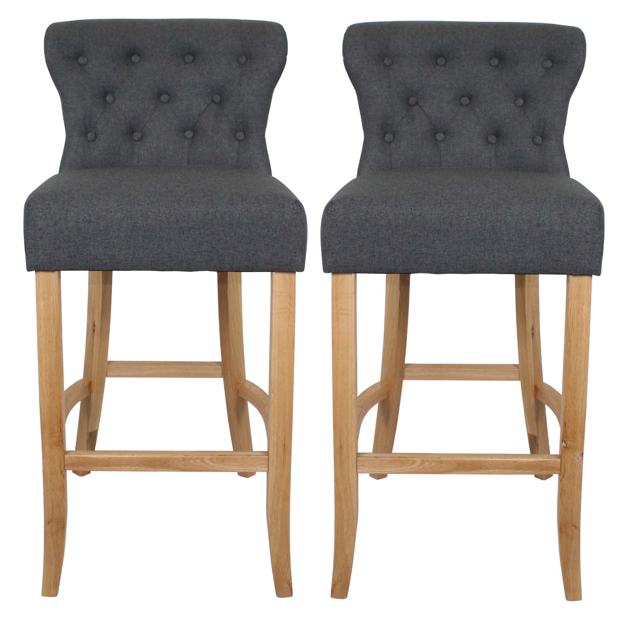 These ever so elegant looking bar stools have a deeply padded seat and buttoned back, a stylish addition that will add that luxurious finish to your room, and with the colour options of biscotti beige or graphite grey, you only have to choose the finishing touch of clear Oak or brushed finished legs? What will it be?