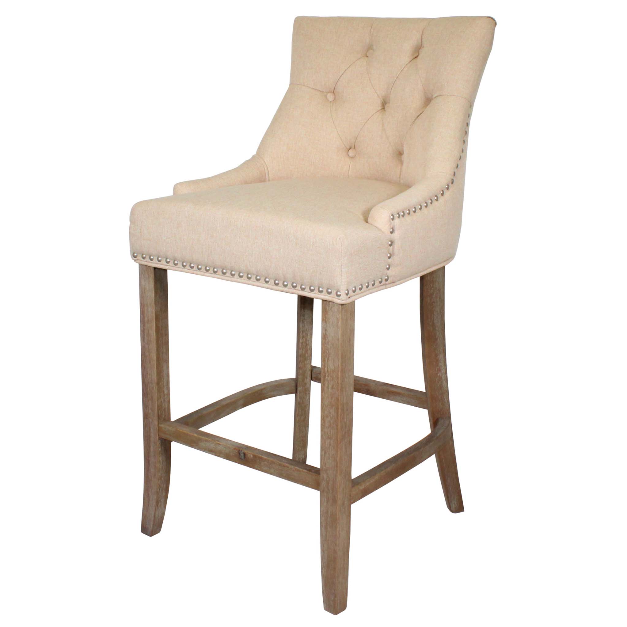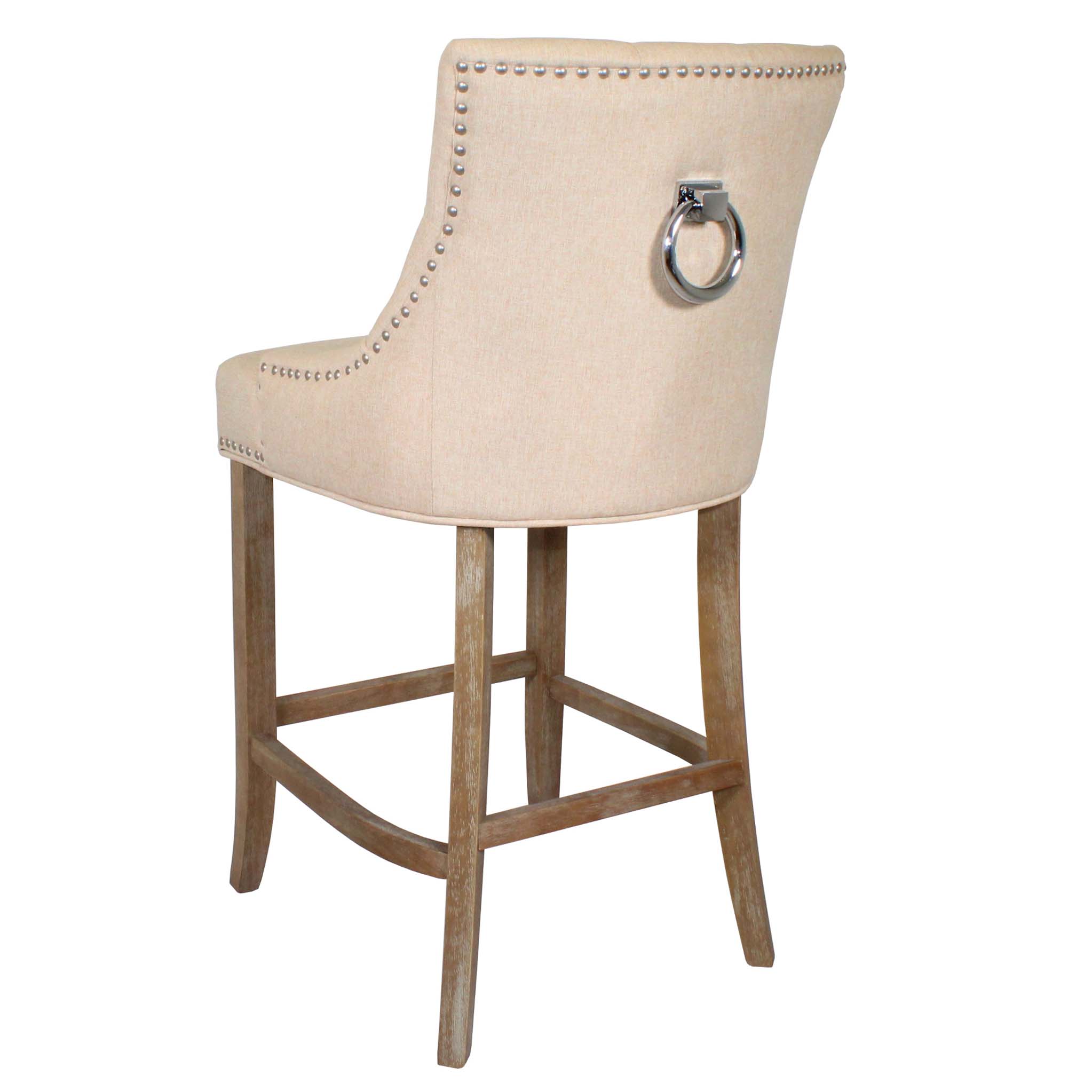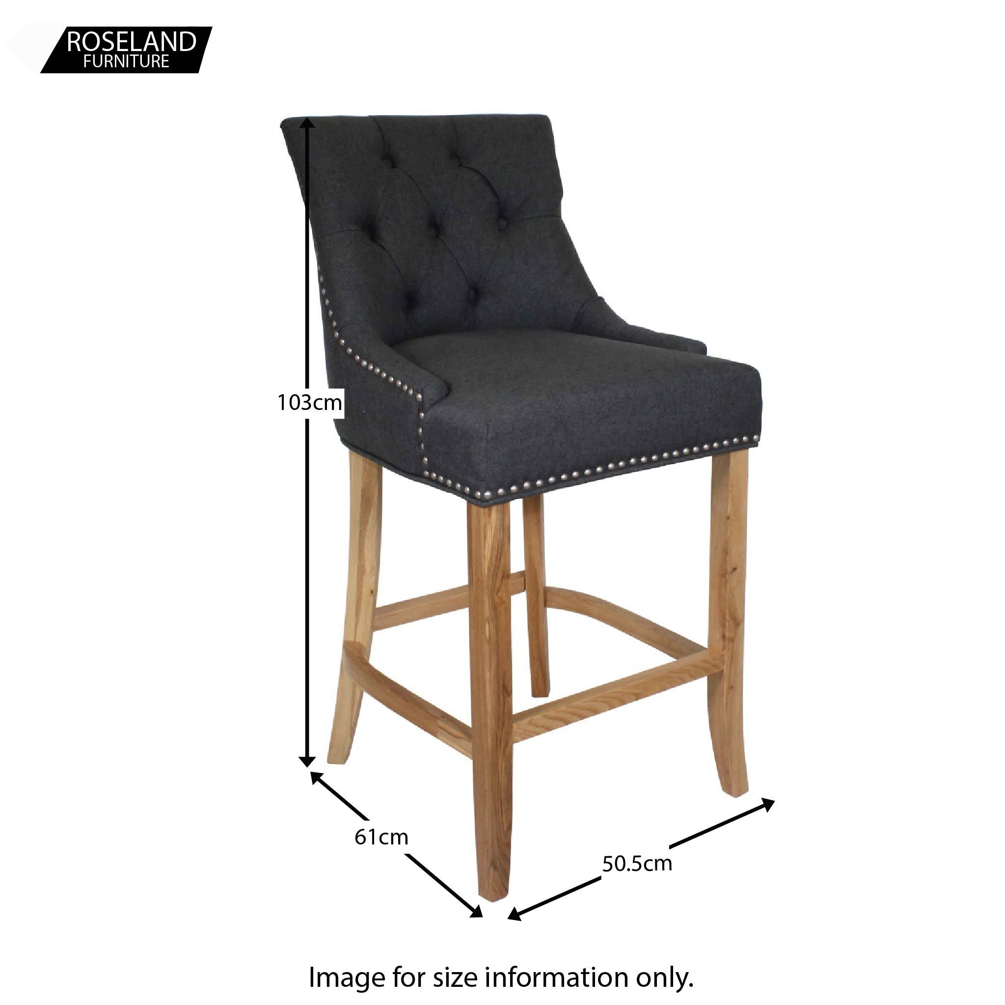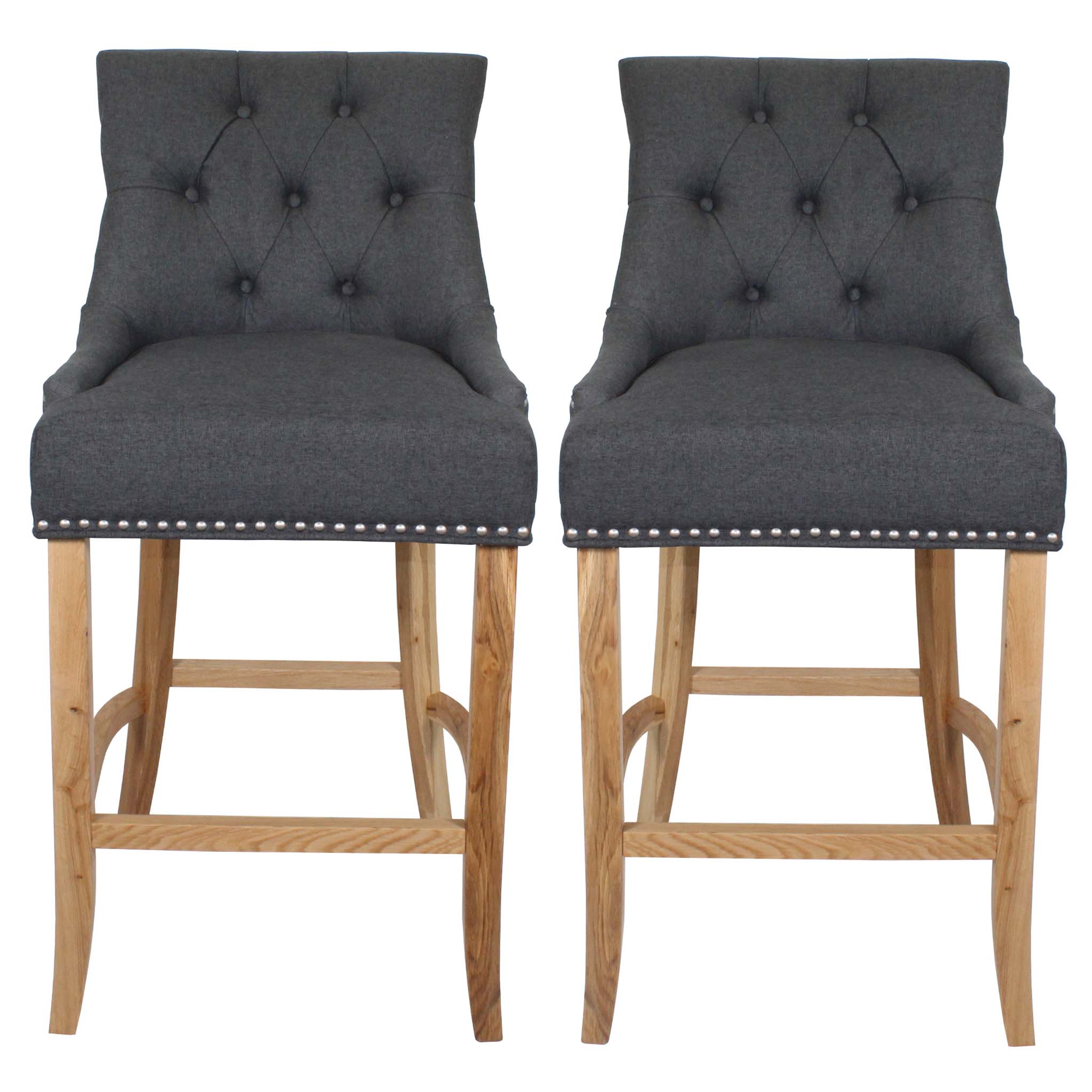 These ever so elegant looking bar stools have a deeply padded seat with stud detailing to the edges and a deep buttoned back.  A stylish addition that will add that luxurious finish to your room, and with the colour options of biscotti beige or graphite grey, you only have to choose the finishing touch of clear Oak or brushed finish to the legs? What will it be?