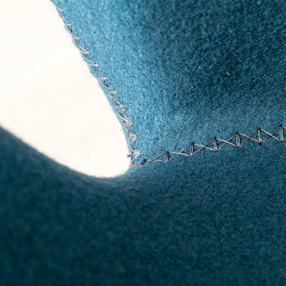 The design comes in a choice of finishes and colours. Petrol blue felt, light grey felt, dark grey felt, red polyester, brown leather or black leather. Please take a look in our shop (link below) to view the other options.