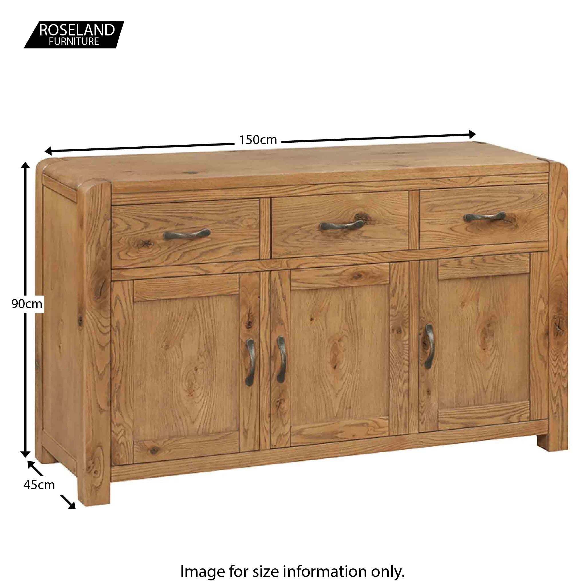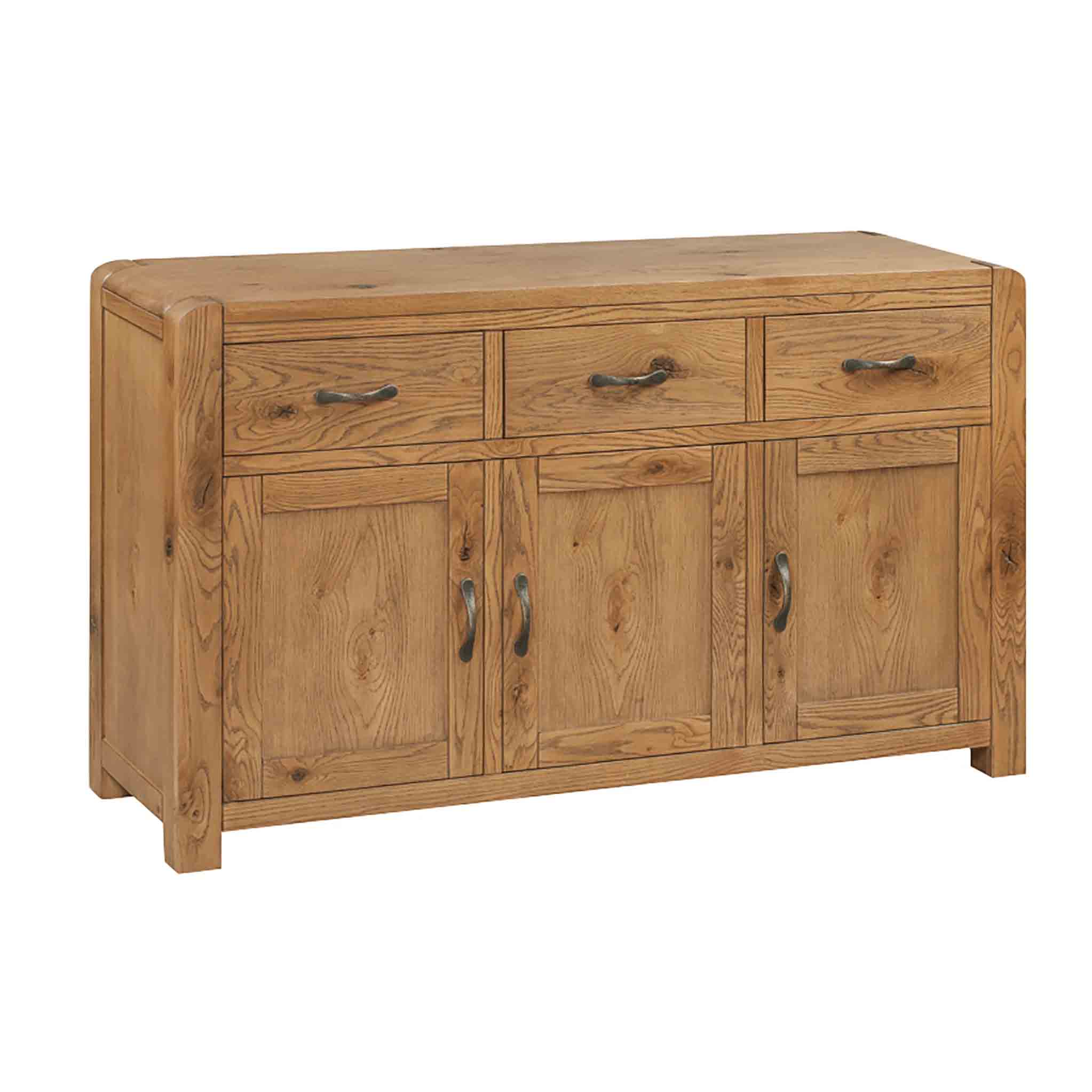 Our Capri 3 Door sideboard is the biggest in the range and designed to suit any room in the home. Its practical design enables plenty of storage with its 3 drawers and 3 door cupboard. The lower cupboard area has a fixed internal shelf. This is perfect for storing away those bits and pieces that you don't want on show throughout the home, whilst displaying the items that you do want to on the top.