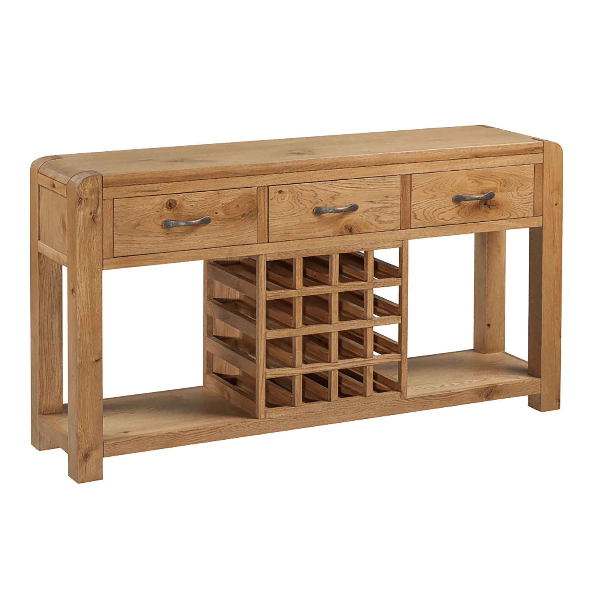 The Capri sideboard with wine rack is a great all round storage solution, featuring 3 large draws, 2 large shelves and wine rack. This would be well suited to the kitchen or dining room, so providing plenty of useful storage space for all of those items that you do not want on display, and those that you do.