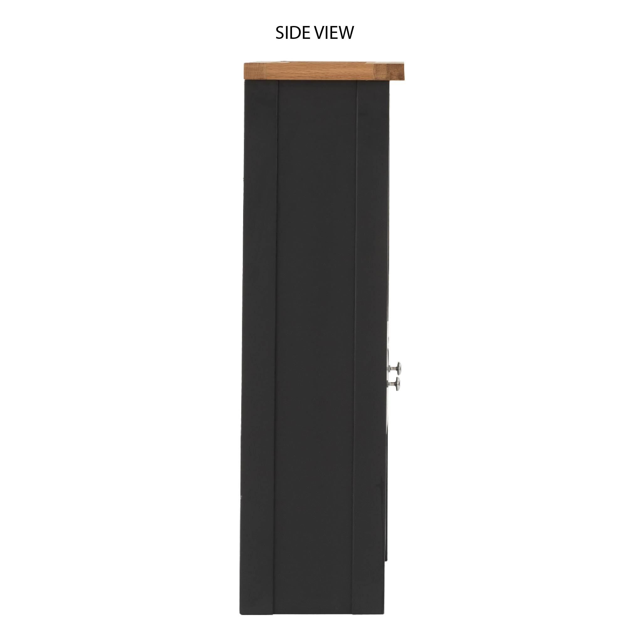 Charlestown Black is ideal for small spaces but will work in any room and has been built to an extremely high quality. Finished in a dramatic deep satin black topped with a golden solid oak top and round metal handles, these stunning pieces will add a touch of sophistication and class to your home!