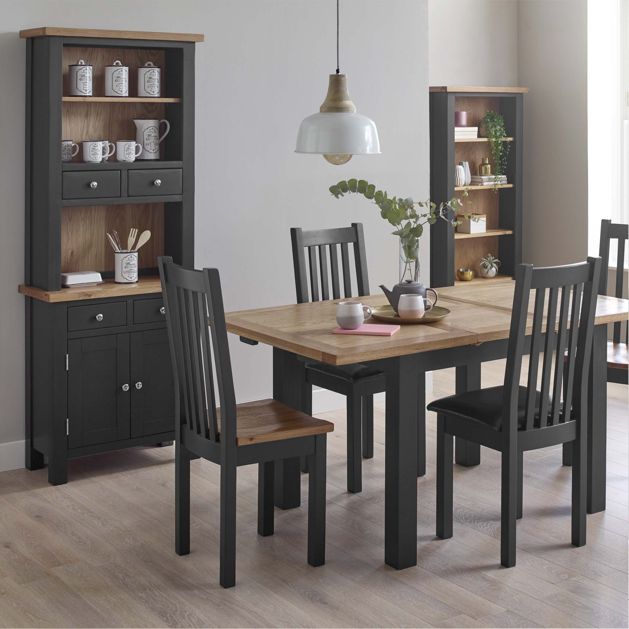 Charlestown Black is ideal for those smaller spaces but will work in any room and has been built to an extremely high quality. Finished in a dramatic deep satin black topped with a golden solid oak top and round metal handles, these stunning pieces will add a touch of sophistication and class to your home!