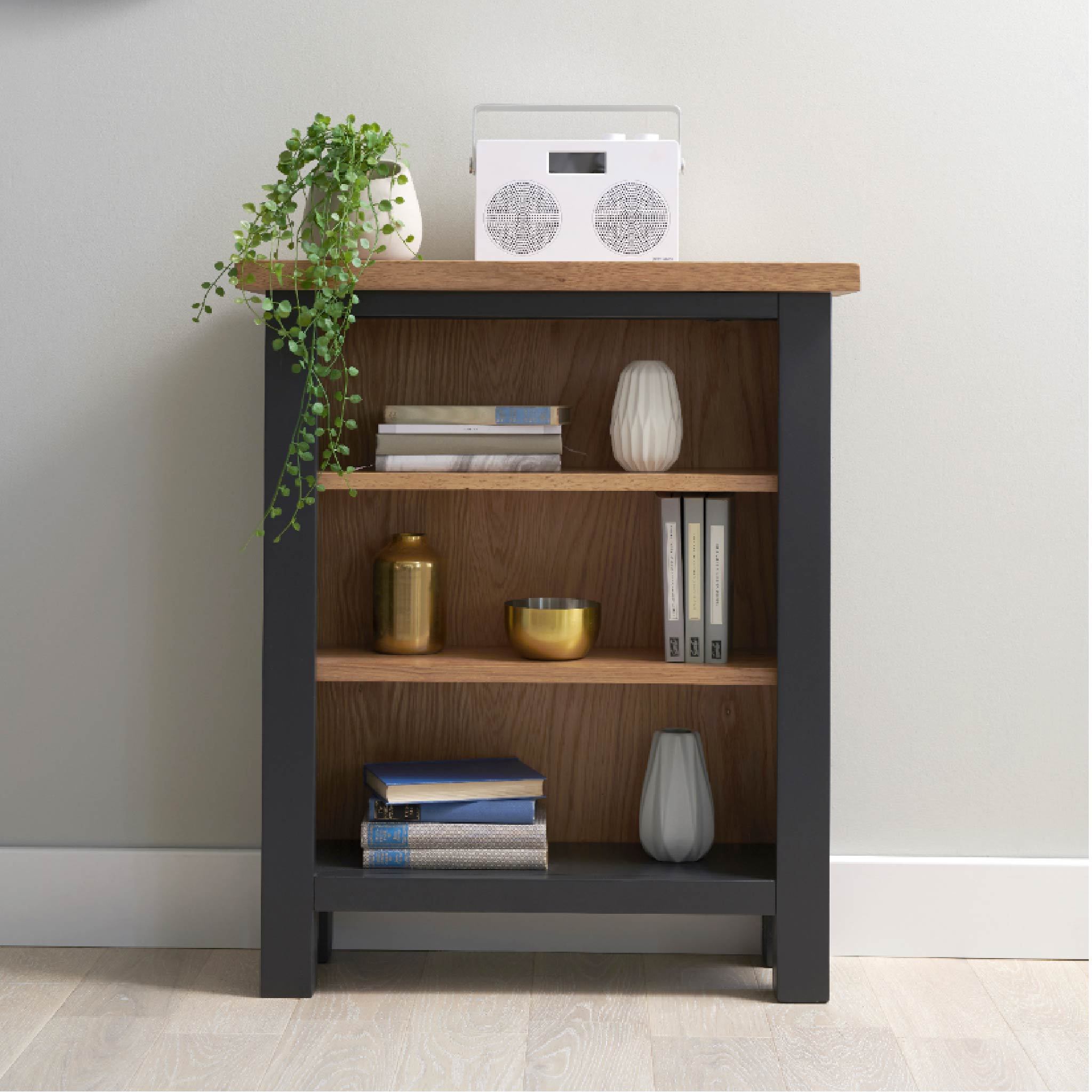 This low bookcase is a sturdy piece of furniture that offers handy extra storage and somewhere to display your cherished collection of books.