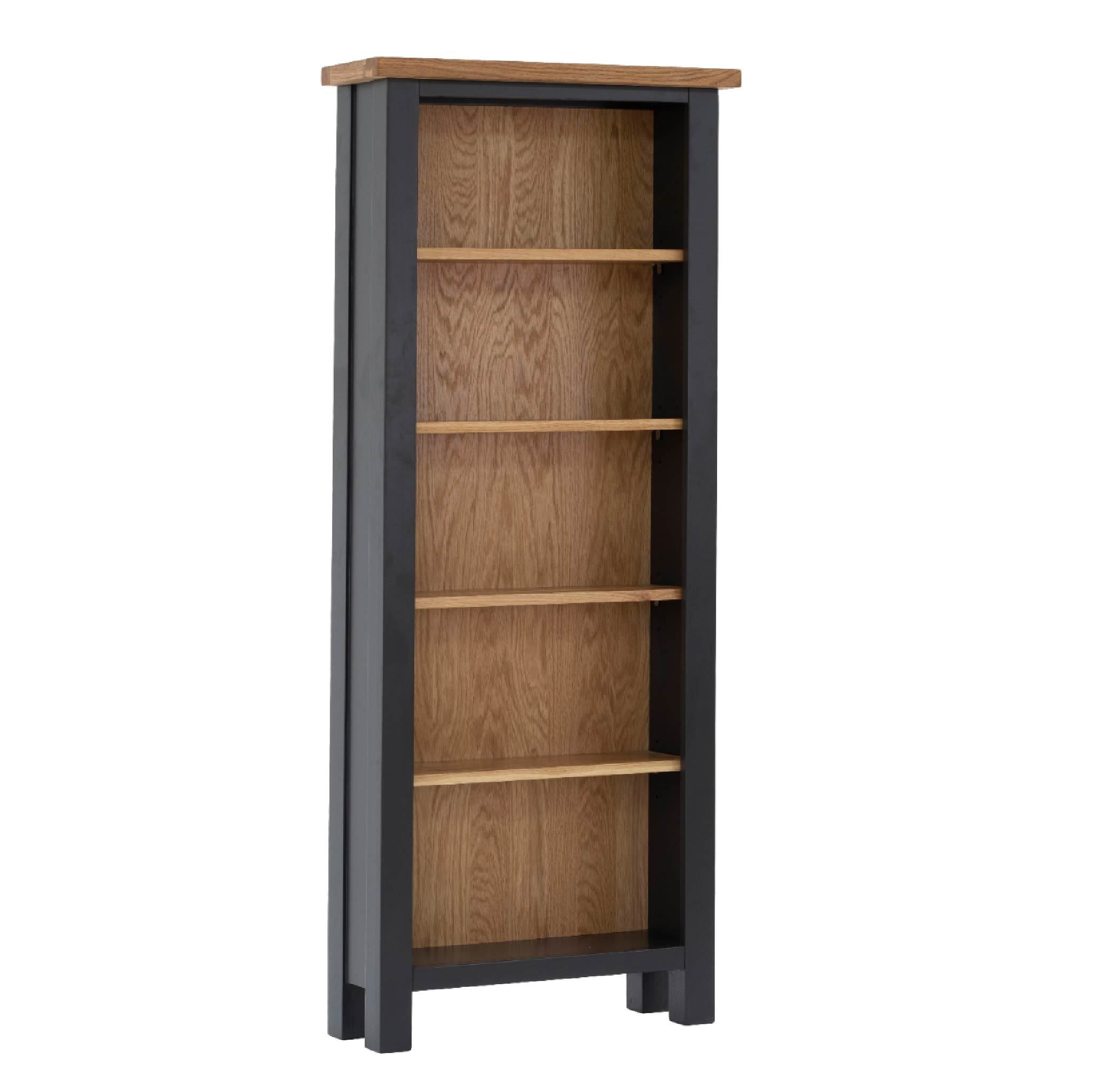 This large, 5 shelf slim bookcase is a sturdy piece of furniture that offers handy extra storage and somewhere to display your proud collection of books and media.