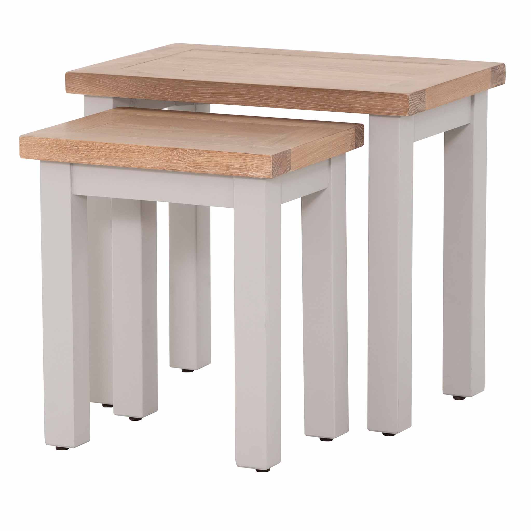 Crafted from solid oak and solid wood, the Charleston Grey nest of tables will add real quality to your home. The lacquered wooden frame has a clean design with a beautiful golden oak top and an on-trend light grey base.