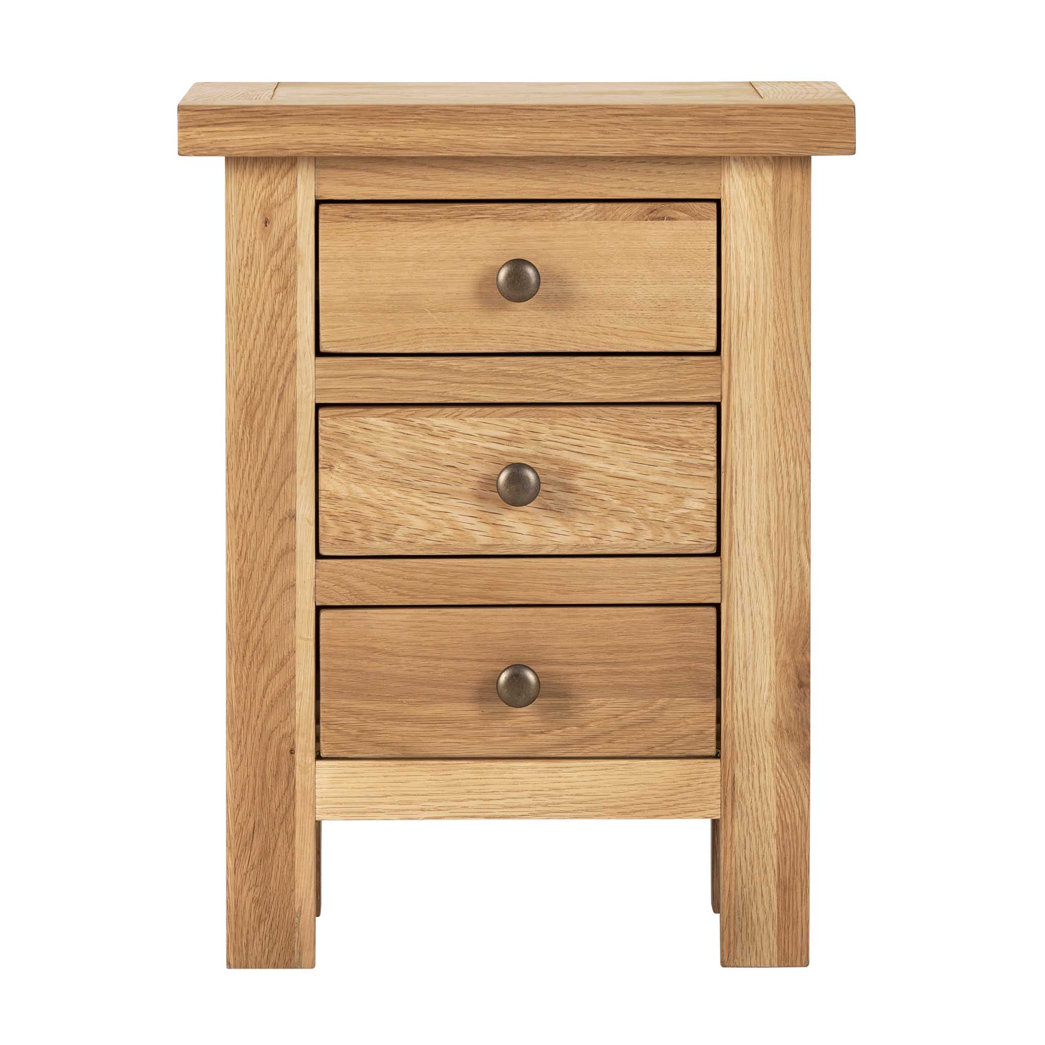 This fantiastic bedside cabinet will add a delightful finishing touch to your sleeping space! It's crafted from lightly lacquered oak and solid wood. With its three drawers (featuring beautiful dovetail joints and runners), you won't be short of storage.