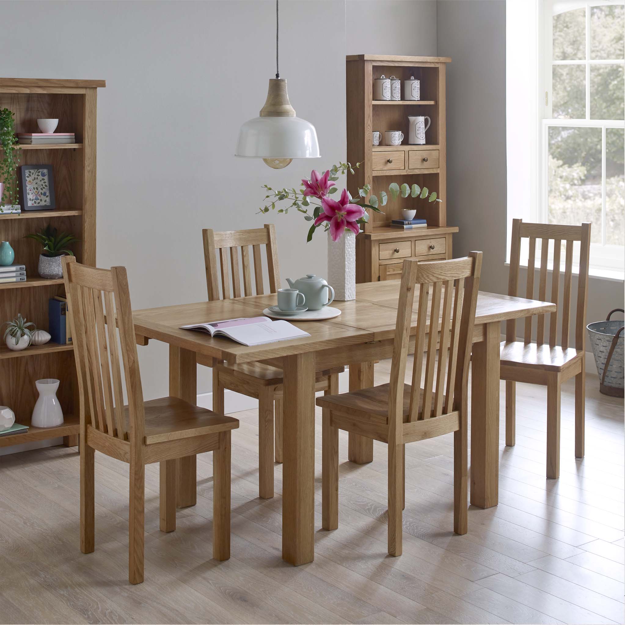 - This beautifully made oak dining table is perfect for everyday use and, with its extendable section, great for dinner parties too.