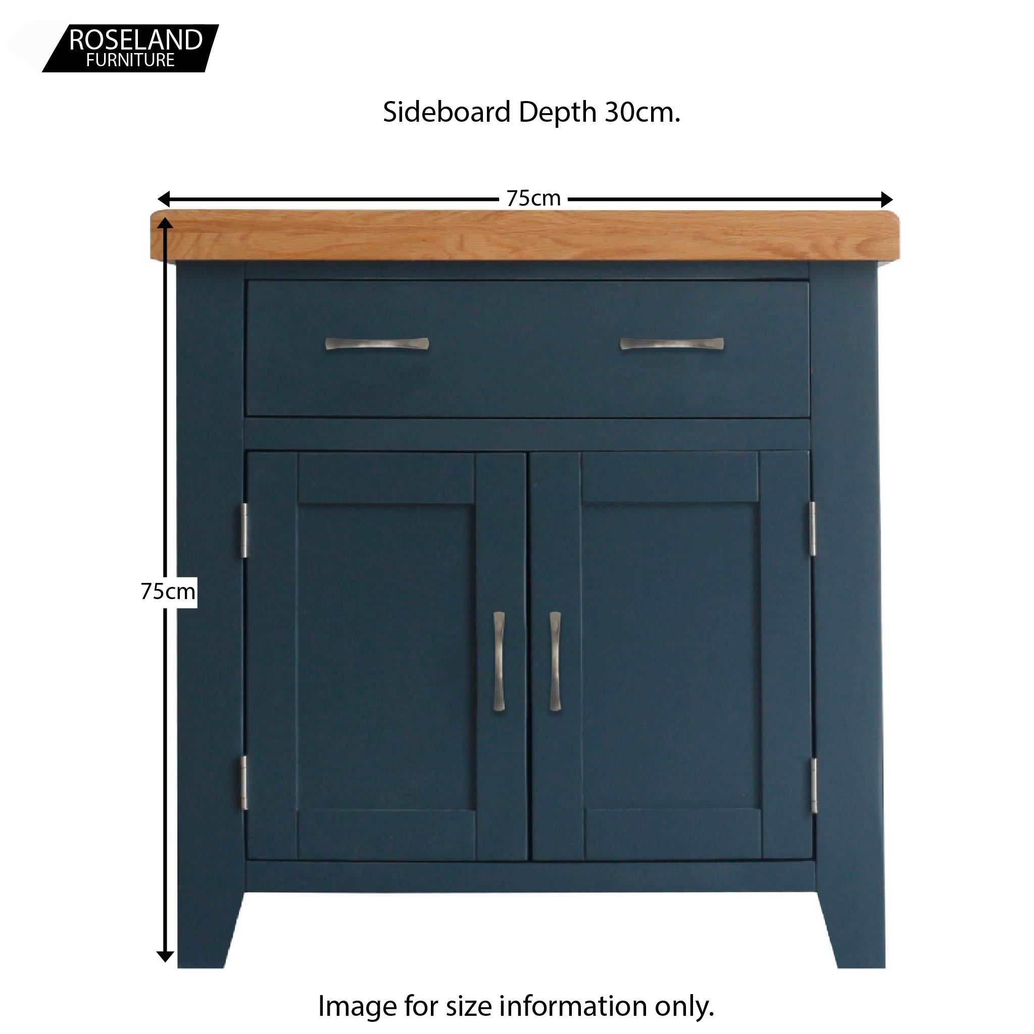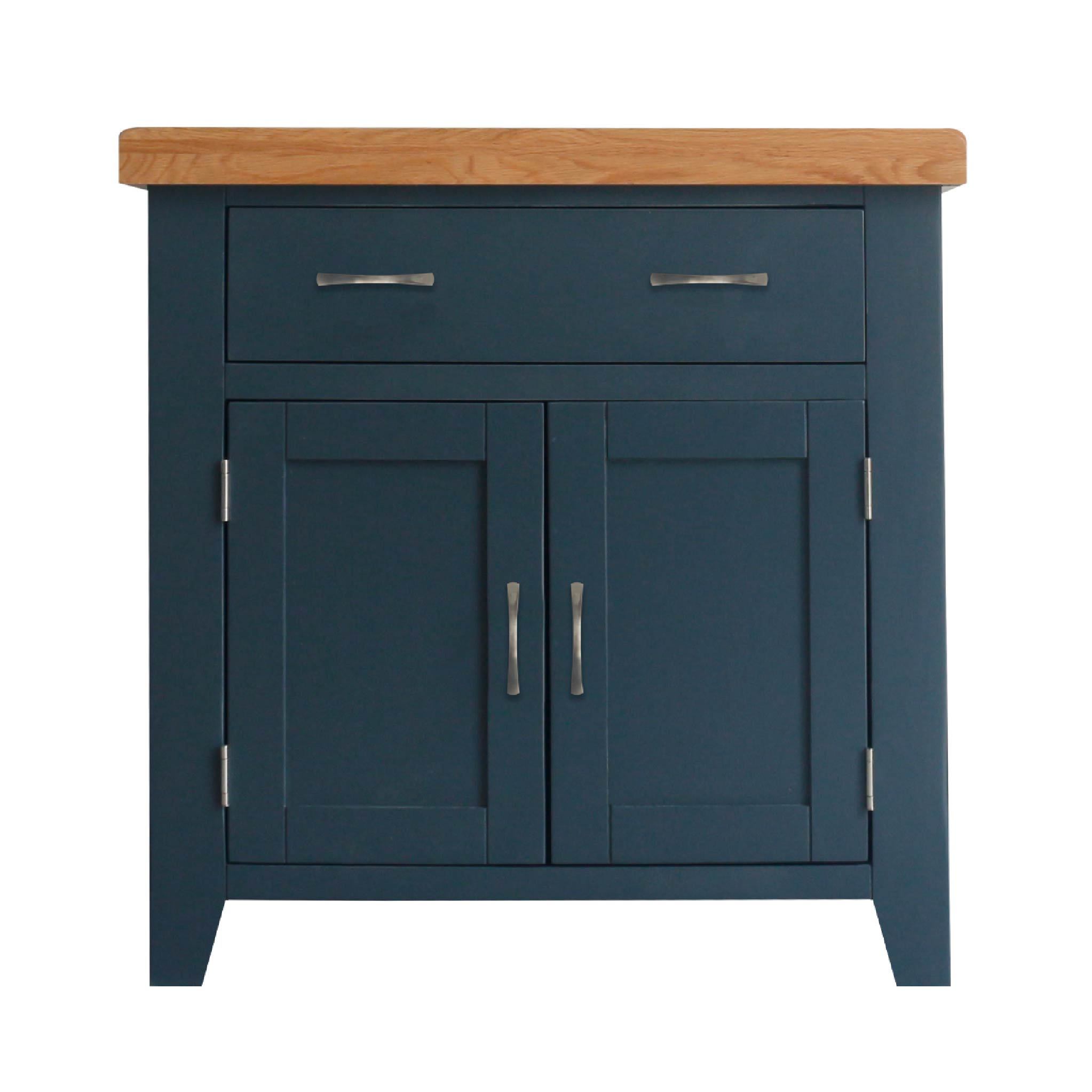 • This beautiful mini sideboard is finished with dark blue paint and contrasting oak top.