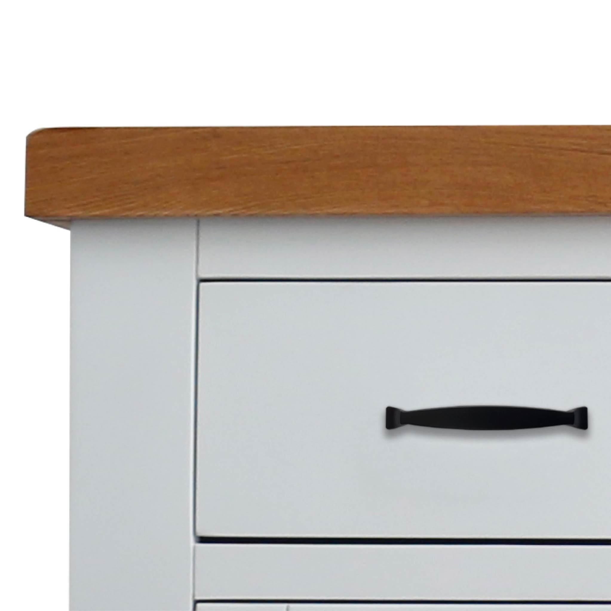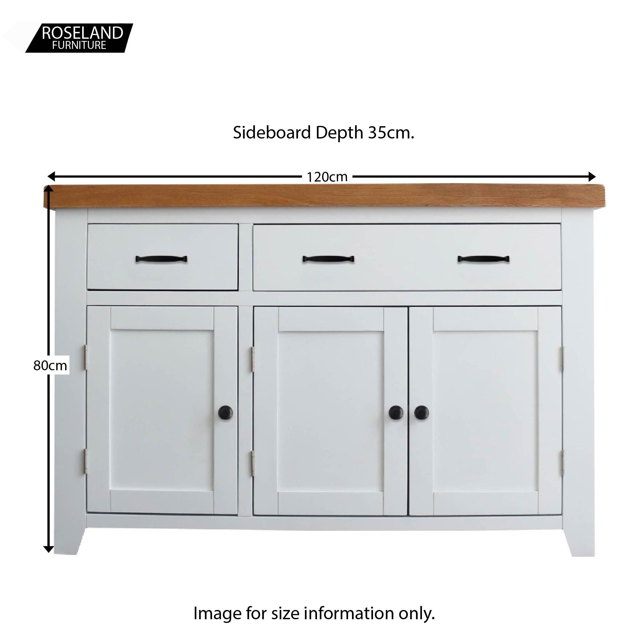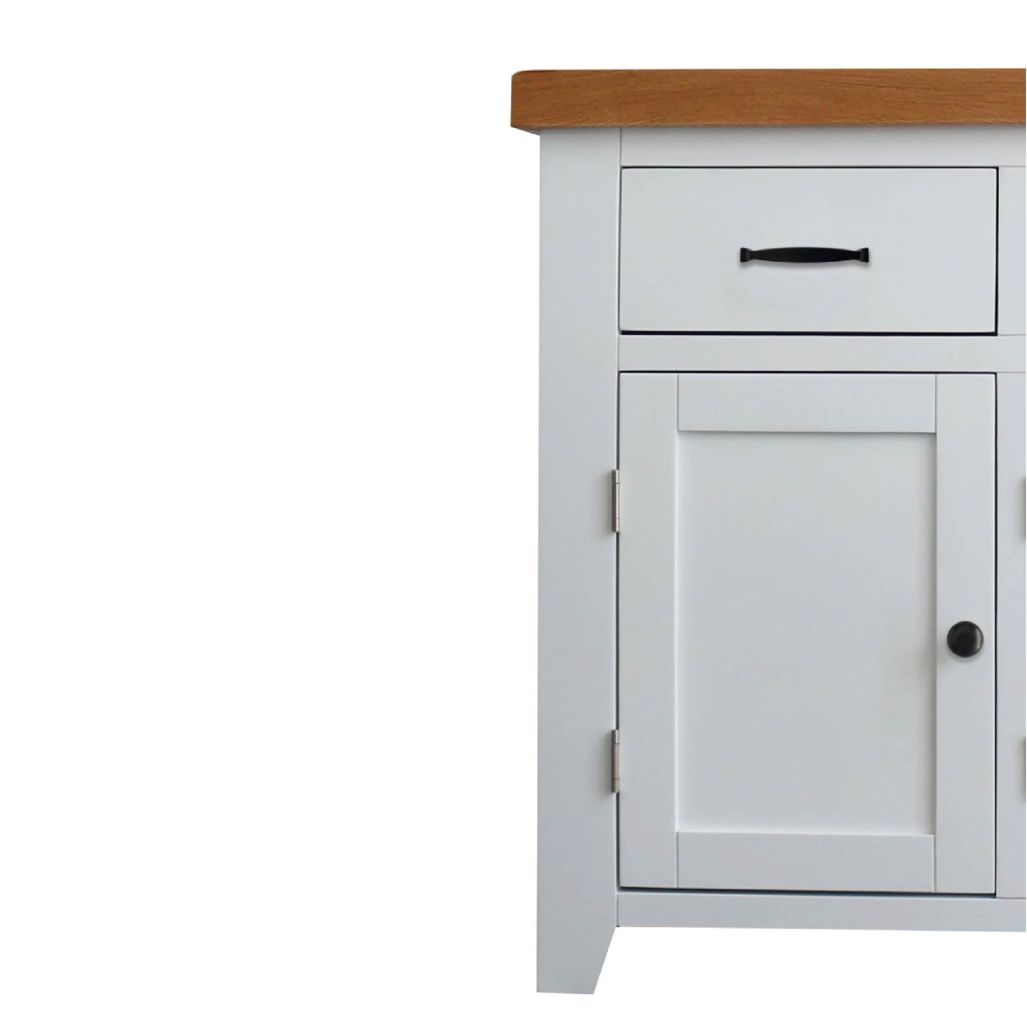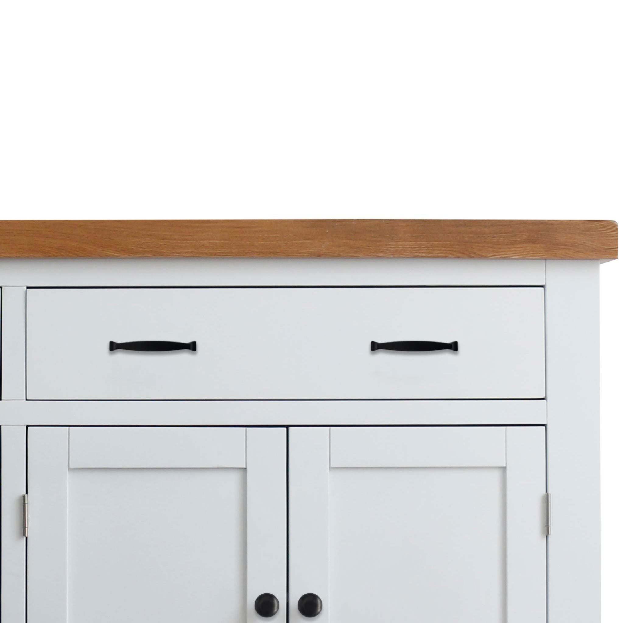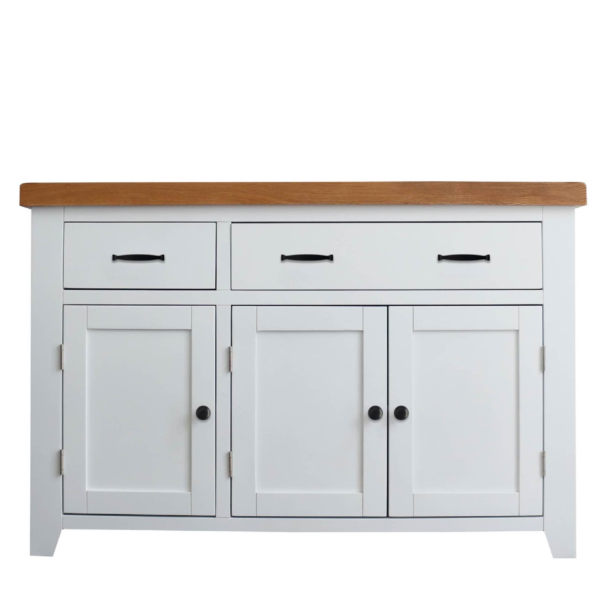 - This beautiful large sideboard is finished with soft white paint and contrasting golden oak top.