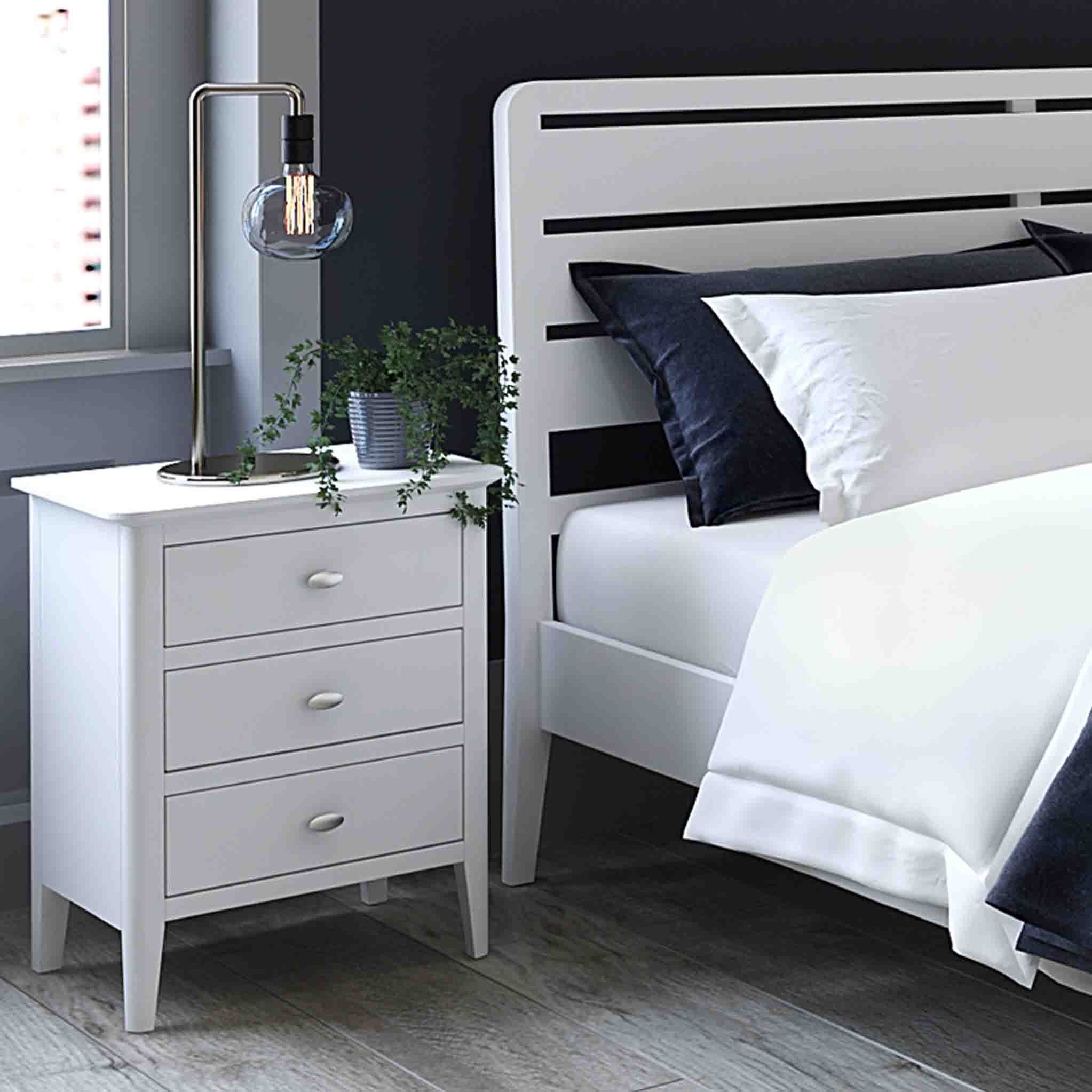 This beautiful bedside chest of three drawers is essential for storing your personal belongings or your current book that you are totally engaged in and also ideal for your bedside lamp. These drawers would look well placed in any large master bedroom or a smaller teen's bedroom. The Chester White bedside Drawer is a perfect addition for any bedroom. Why not take a look at the rest of the Chester Bedroom collection to get that perfect match!