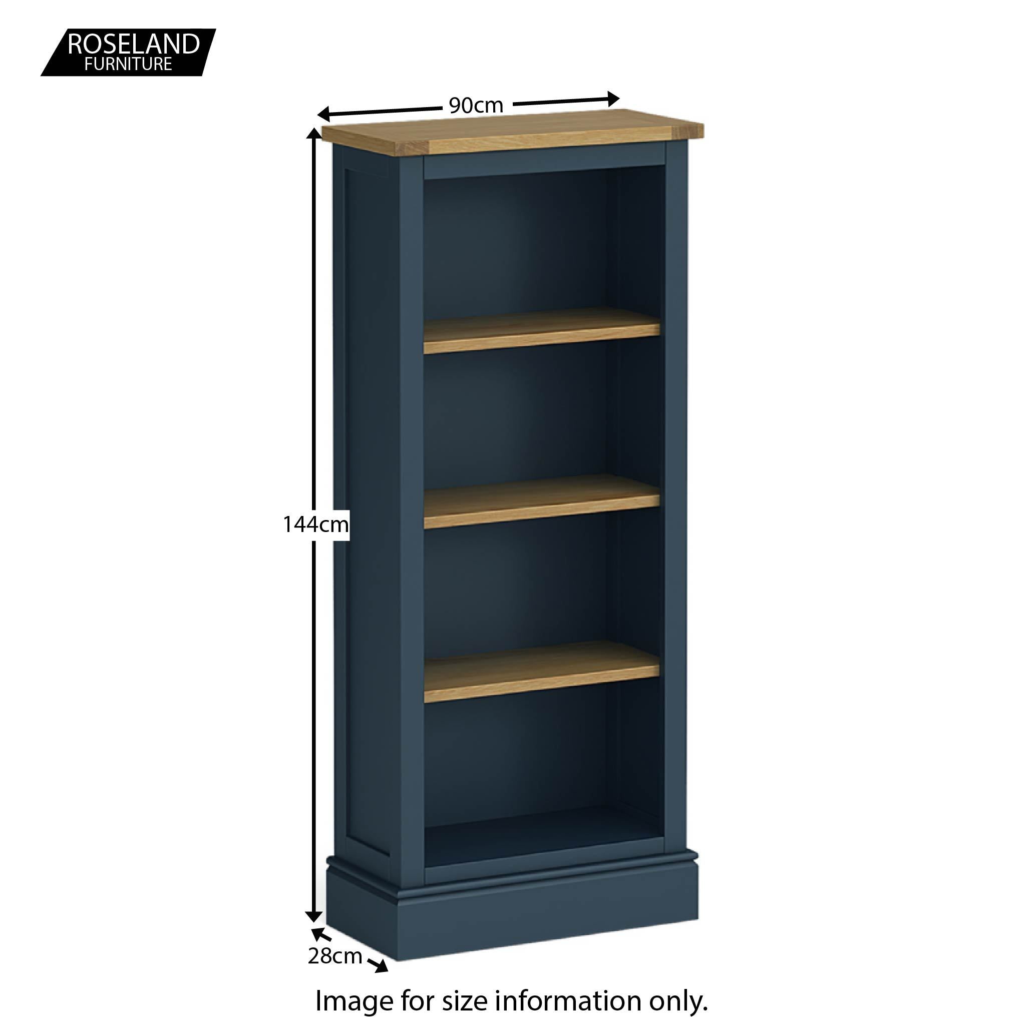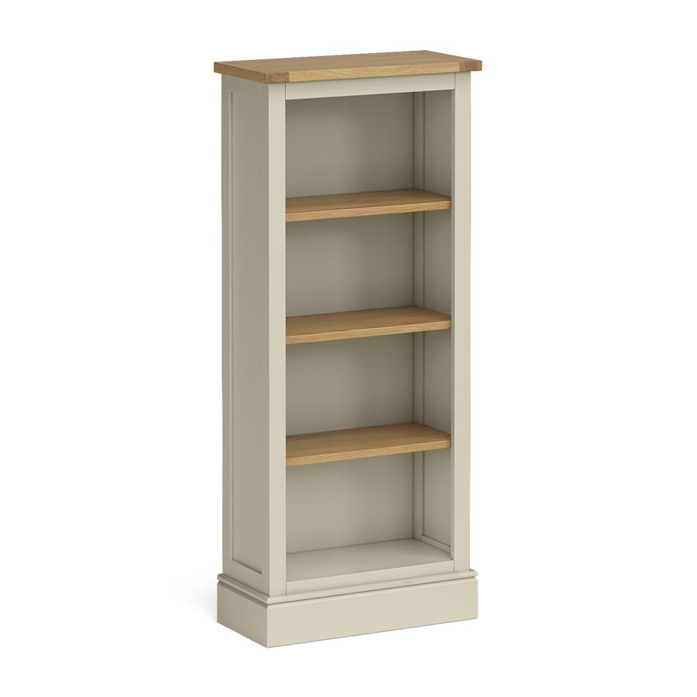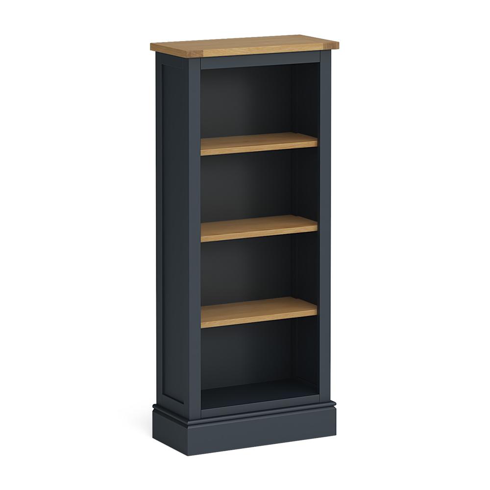 One of three bookcases in the Chichester range. If you've got a small space and aren't sure what to put in it, the Chichester Slim Bookcase might hold the answer! It's the perfect combination of storage and display space in a compact design. The four contrasting oak finished shelves are suitable for paperbacks, small hardbacks, photos or ornaments and the flat top is a great place for a lamp.