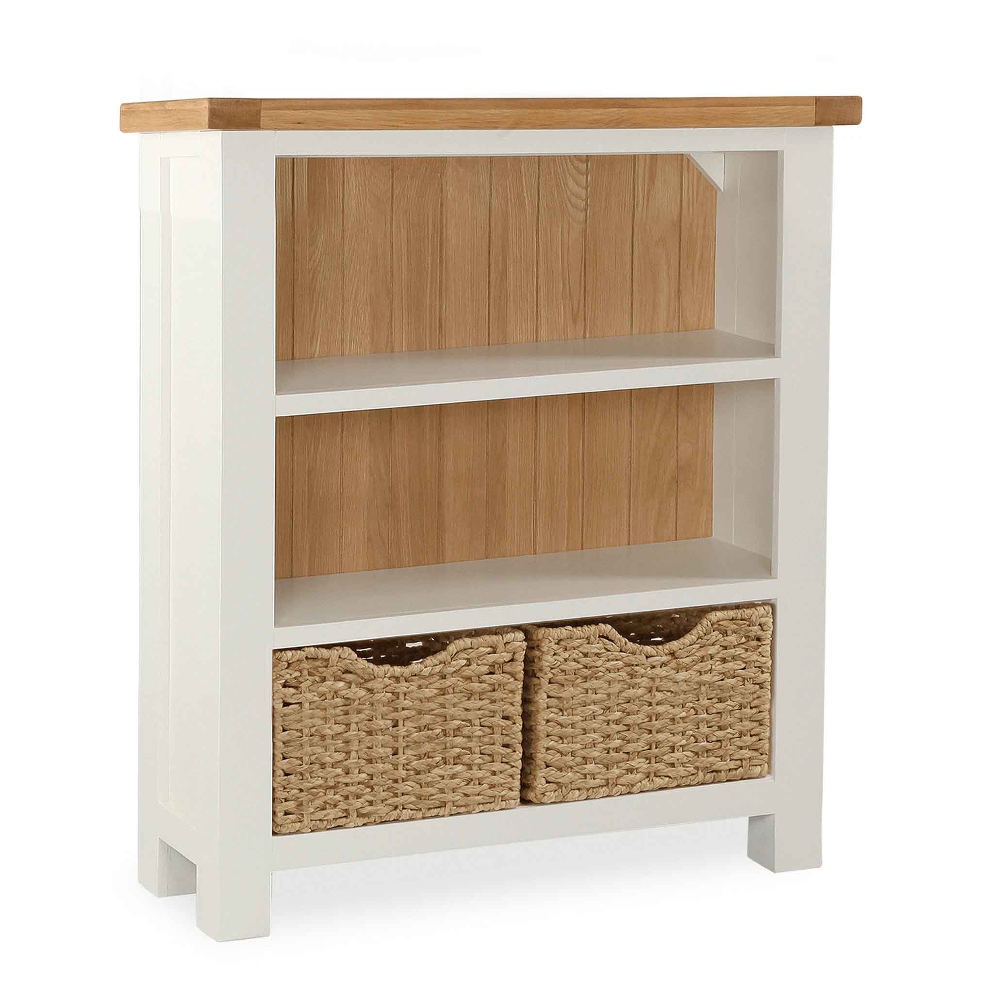 The Daymer Cream Low Bookcase is the smallest of the two bookcases in the Daymer Cream range. Featuring plenty of book storage space and additional storage space in the handwoven baskets. Pair this with other items in the Daymer Cream range for the perfect contemporary room.