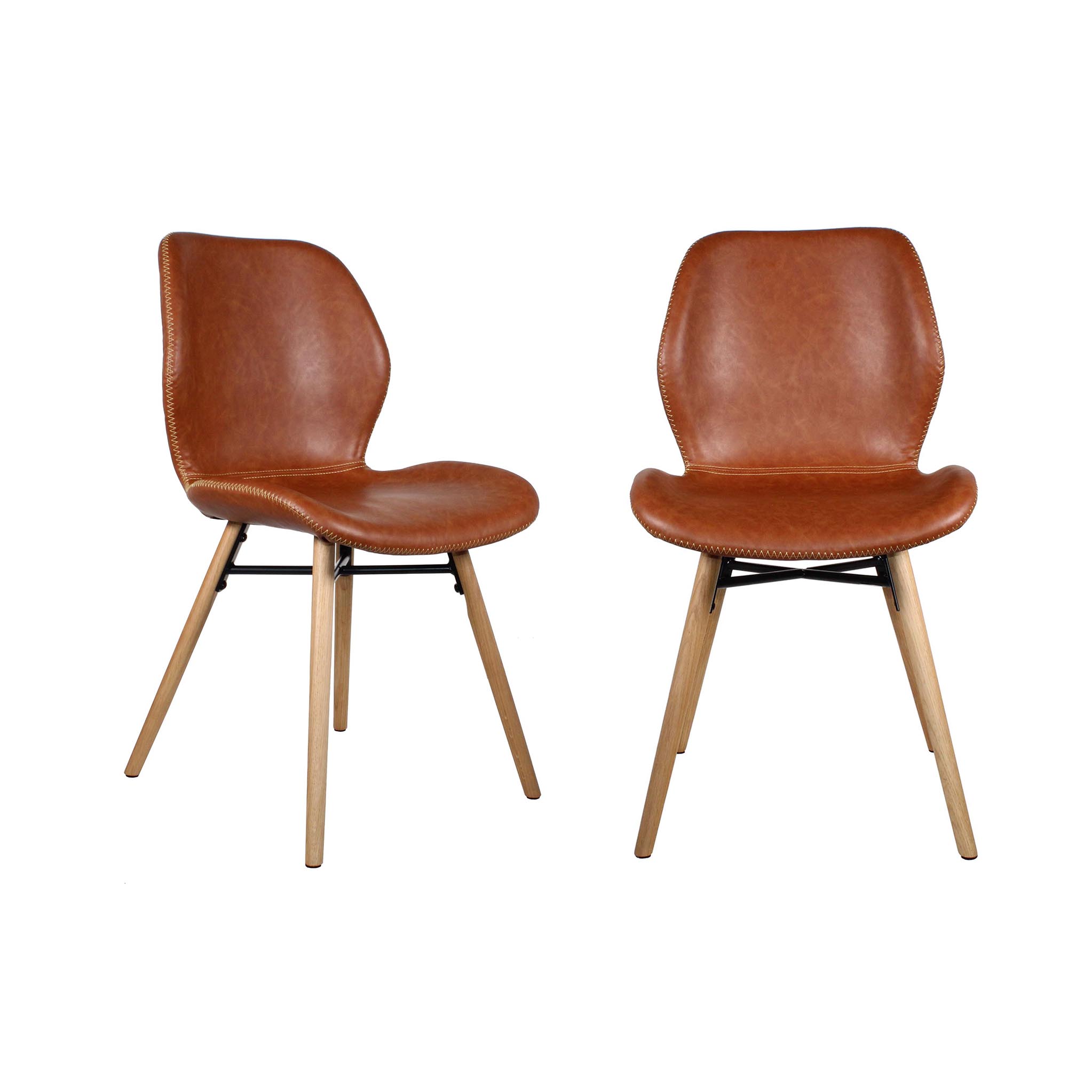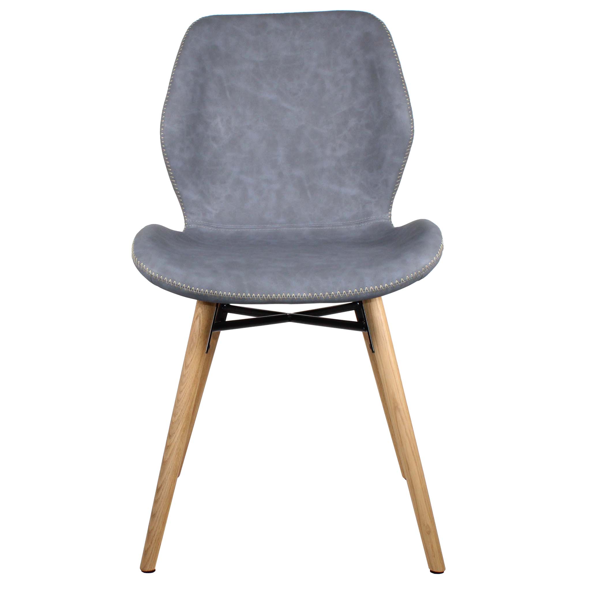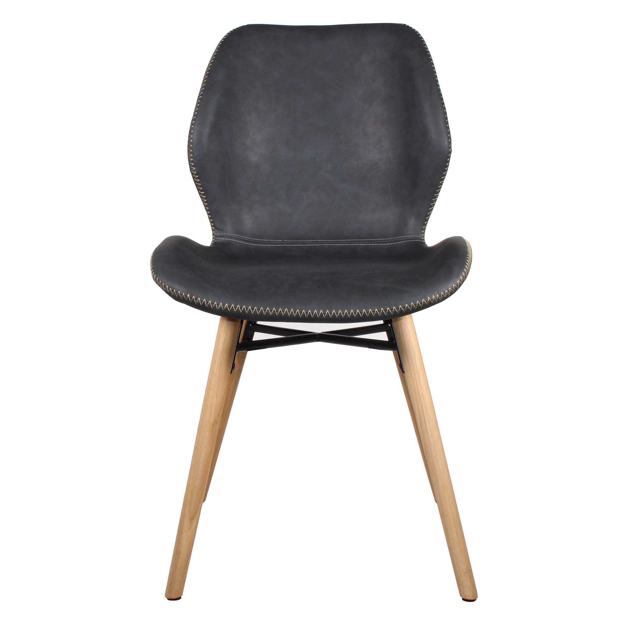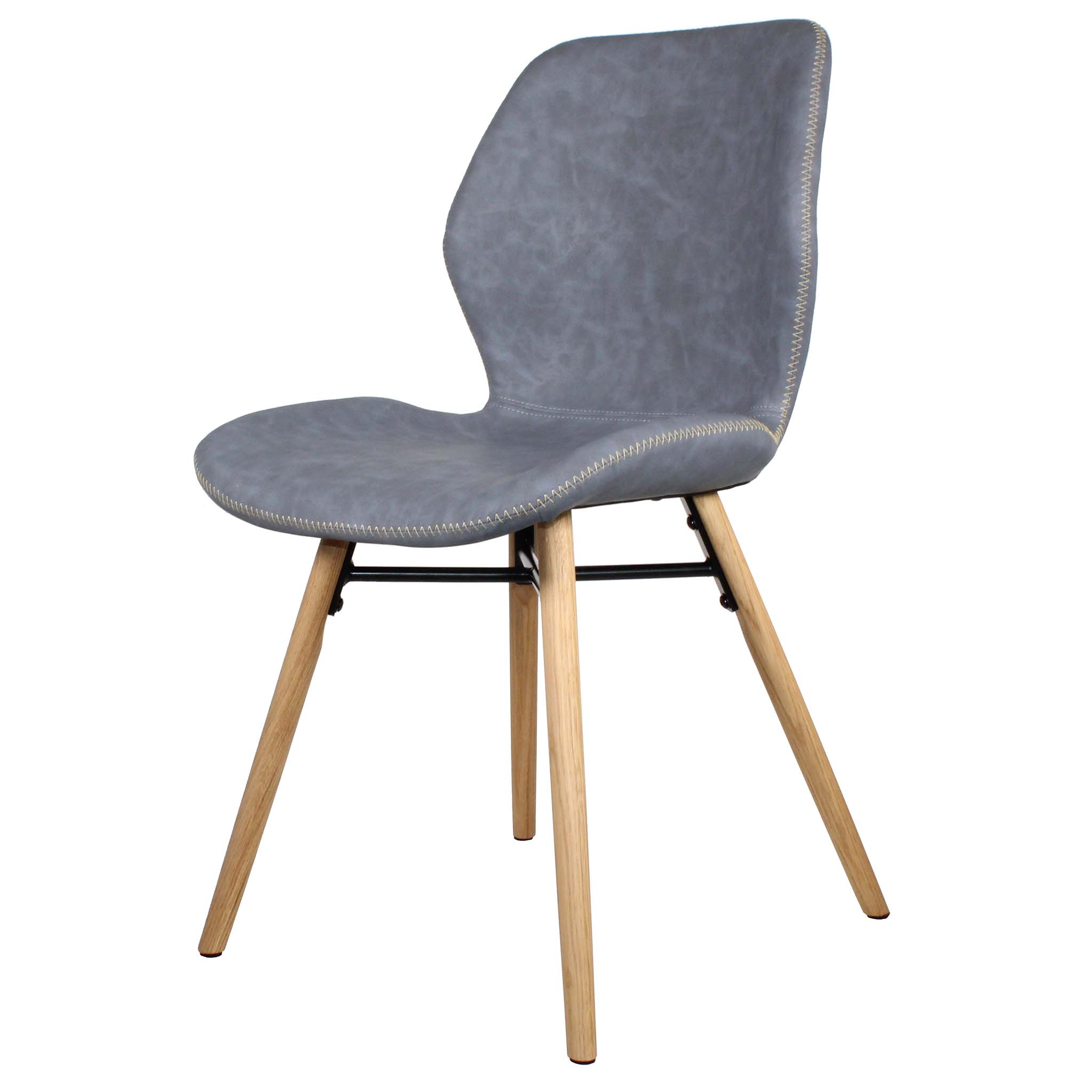 - The bucket-shaped seat is upholstered with faux leather and features attractive zig-zag stitching.