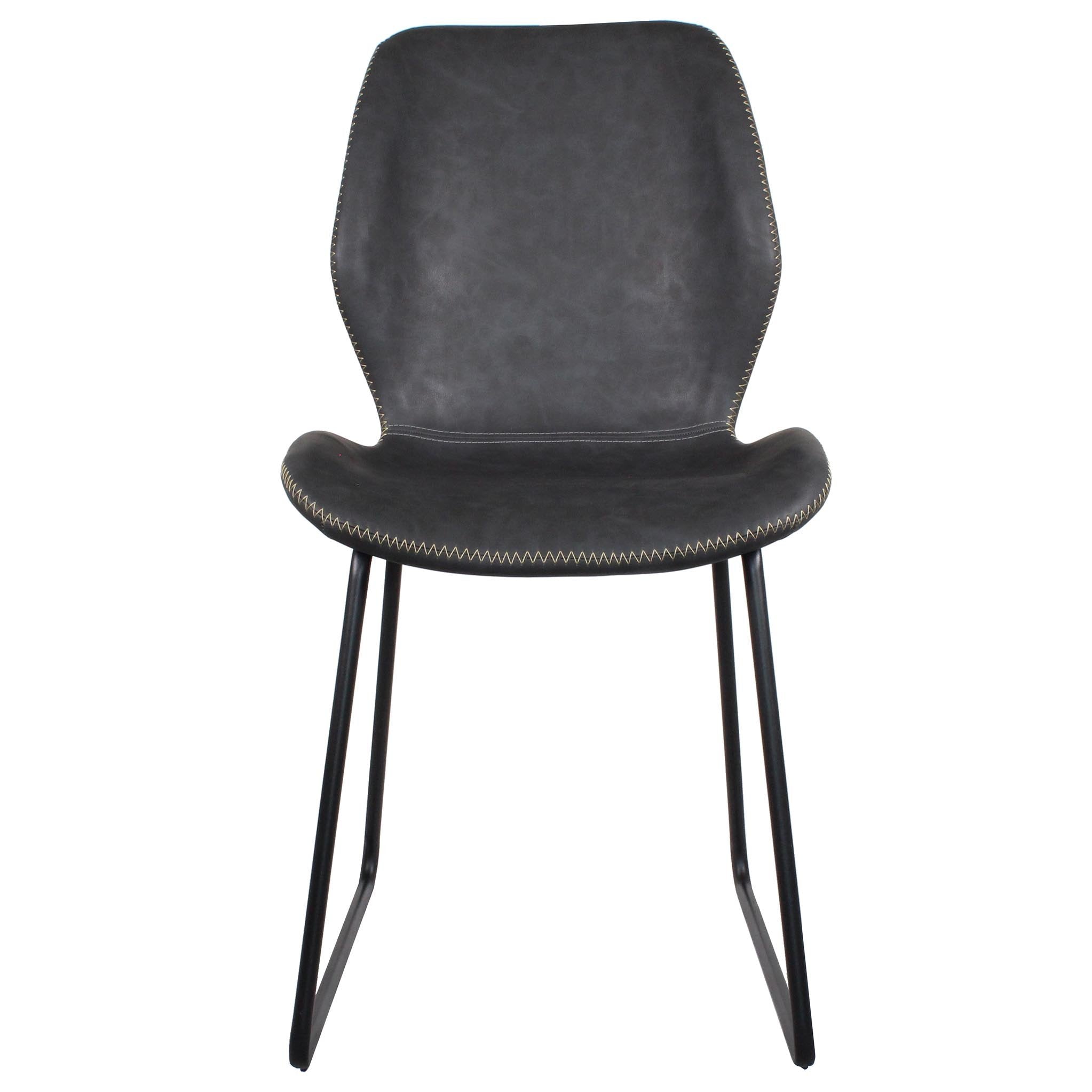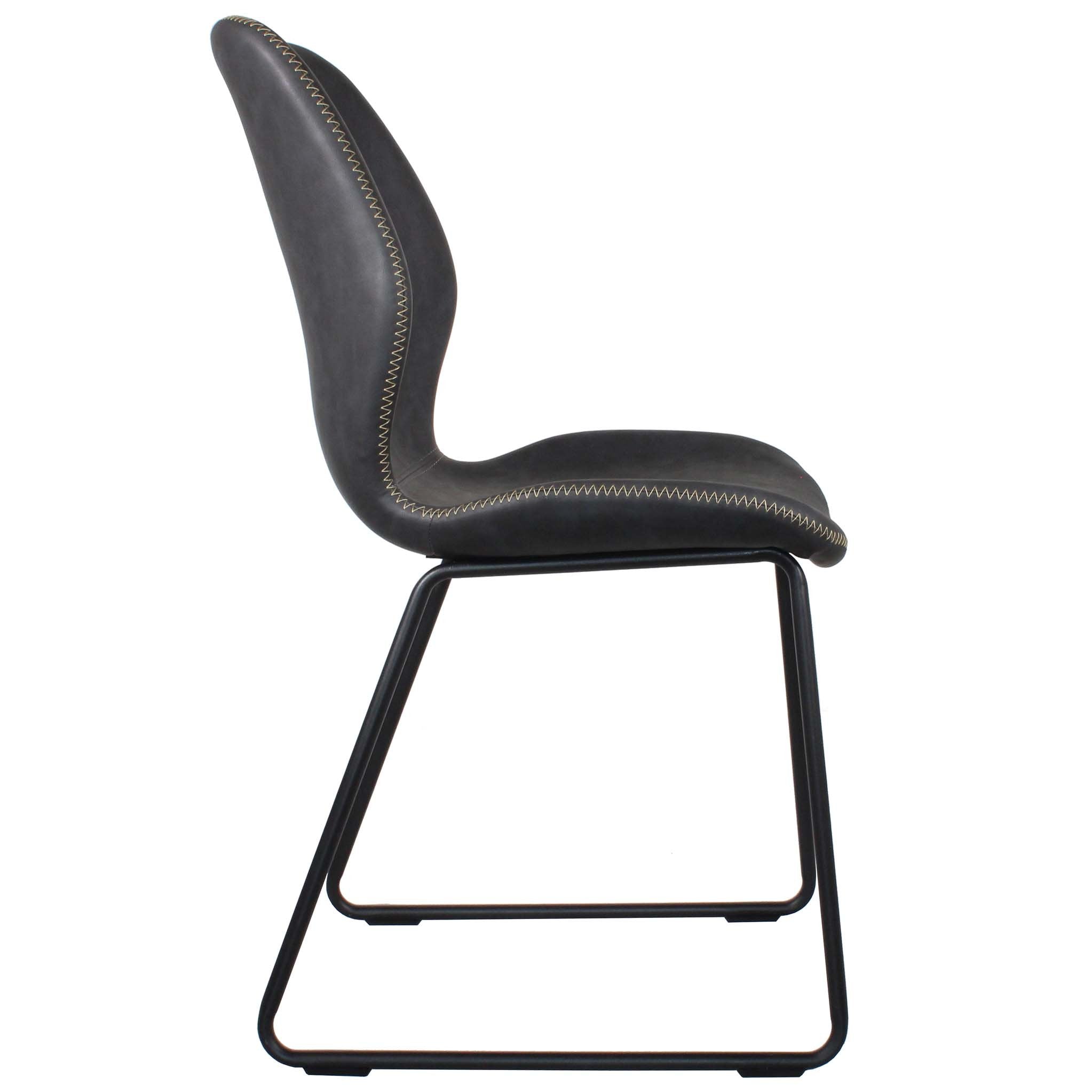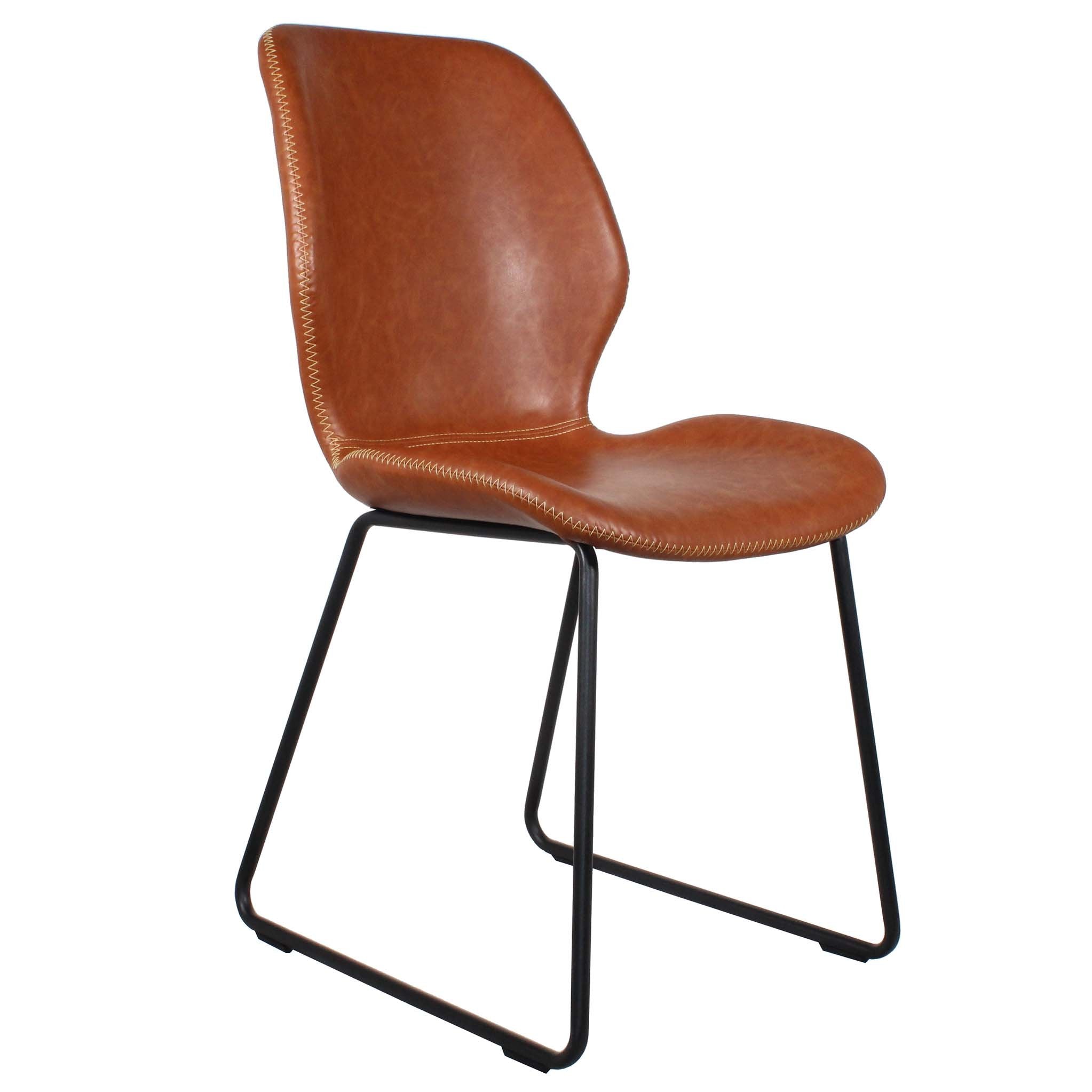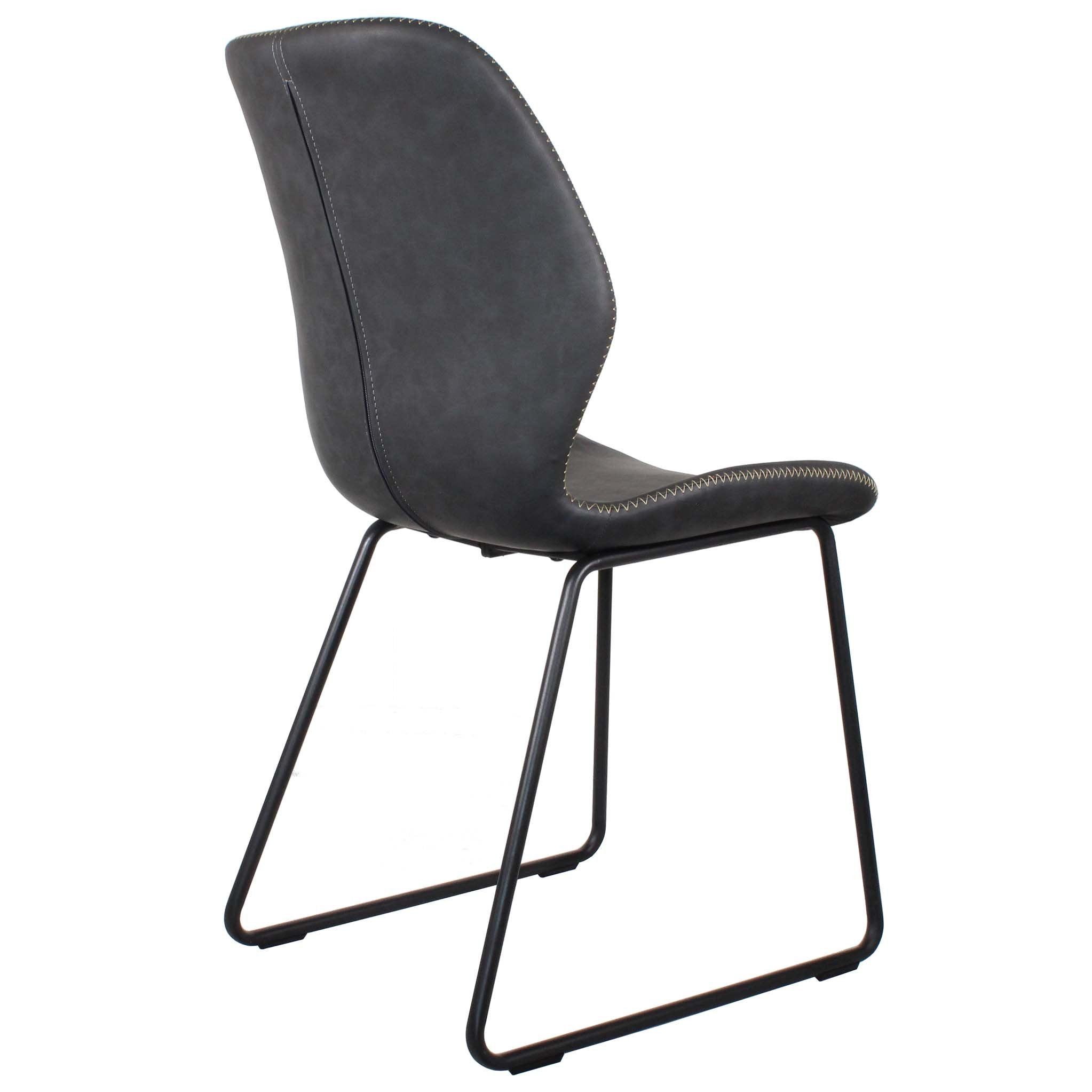- The bucket-shaped seat is upholstered with faux leather and features attractive zig-zag stitching.