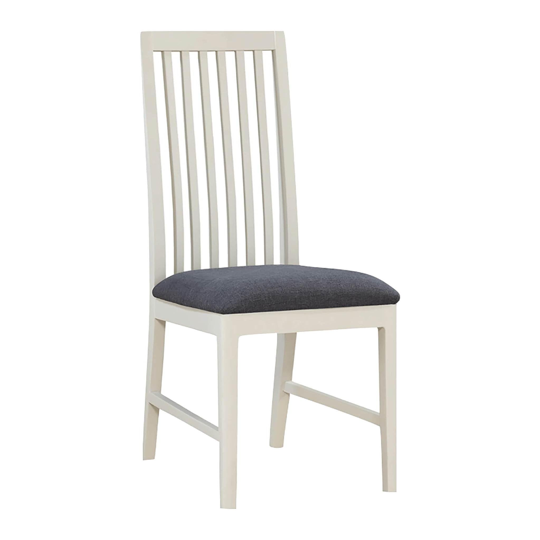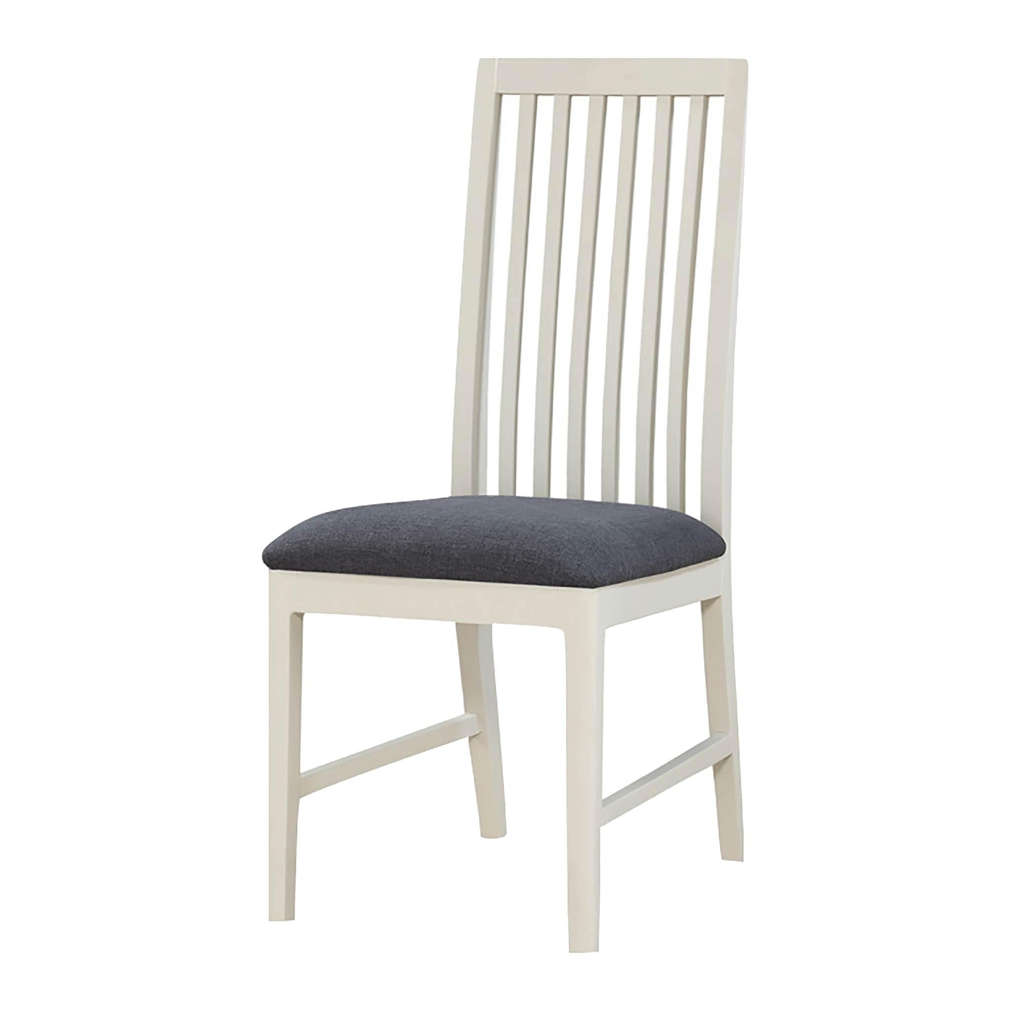 Our Dunmore dining chairs are designed to compliment the tables within the range but can really look great around any table. A comfortable chair which is part of the Dunmore dining set and also available on its own. The Stunning Spanish White paint complement with the charcoal seat pad .