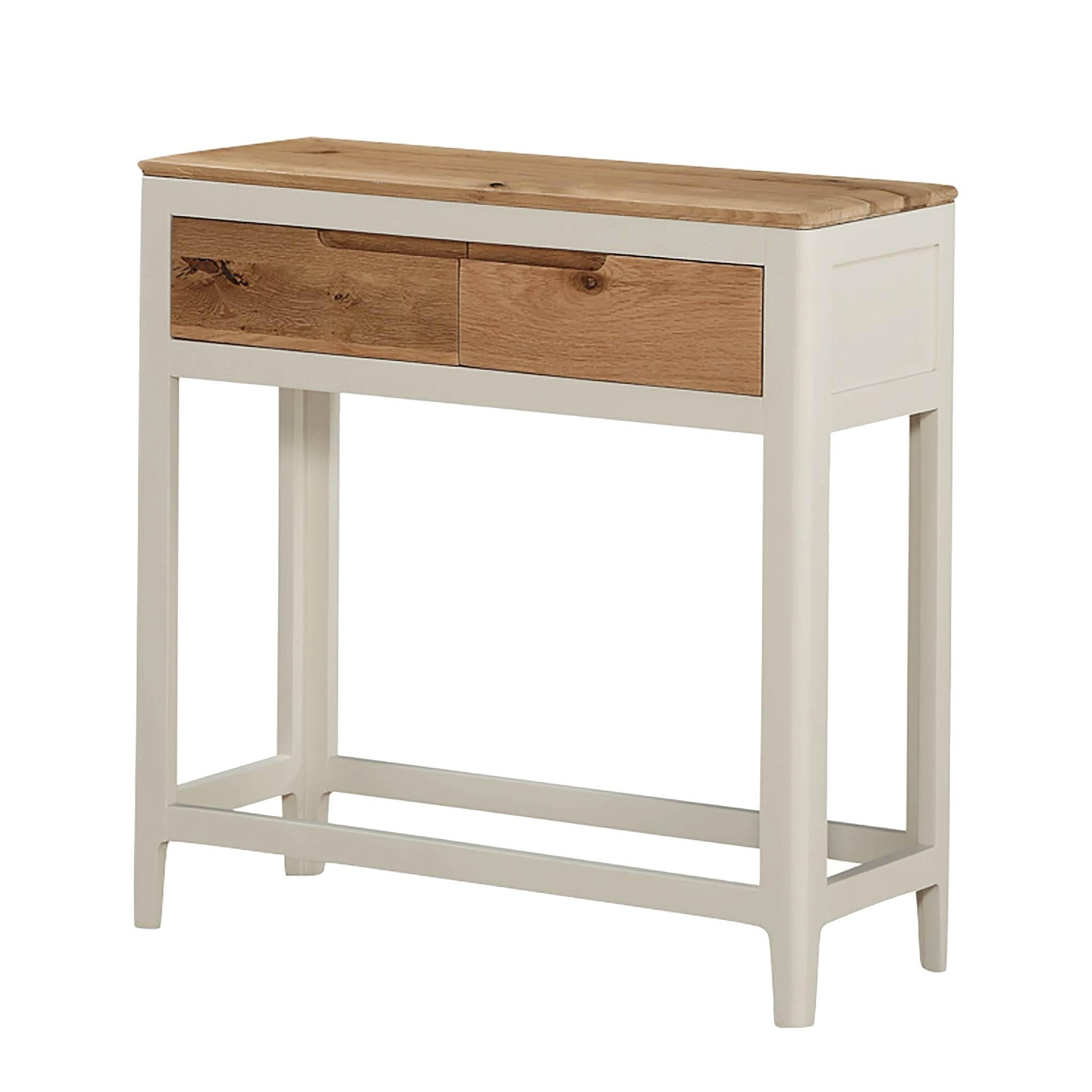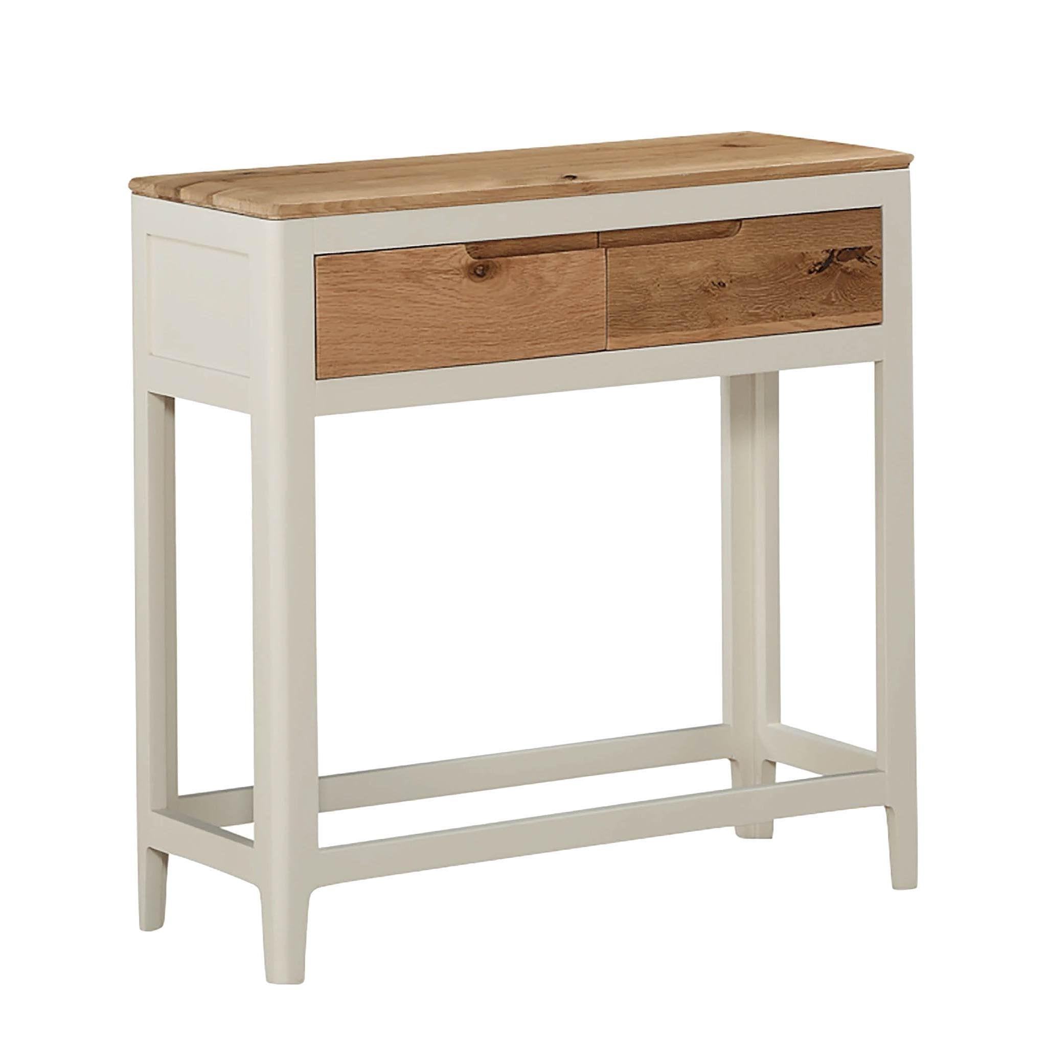 A larger version of the Dunmore Painted Medium Hall Table, the Dunmore Painted console table makes an attractive addition to any number of rooms in the home. The two drawers provide a valuable and practical storage space, while the flat top area makes a great space to display treasured photos or a vase of freshly cut flowers. The simple, modern design that echoes throughout the Dunmore Painted range means that these pieces blend in with many interior design schemes.