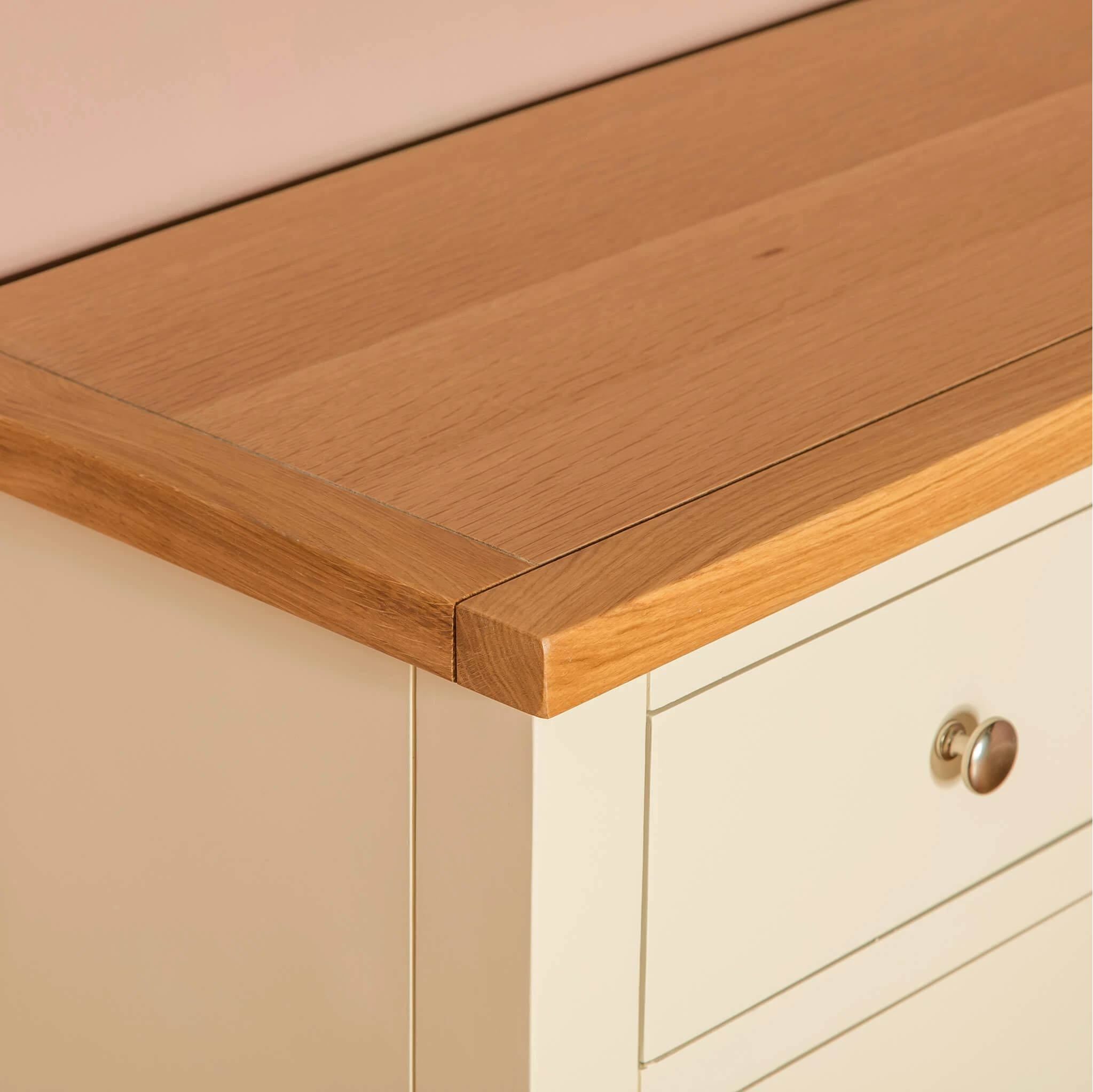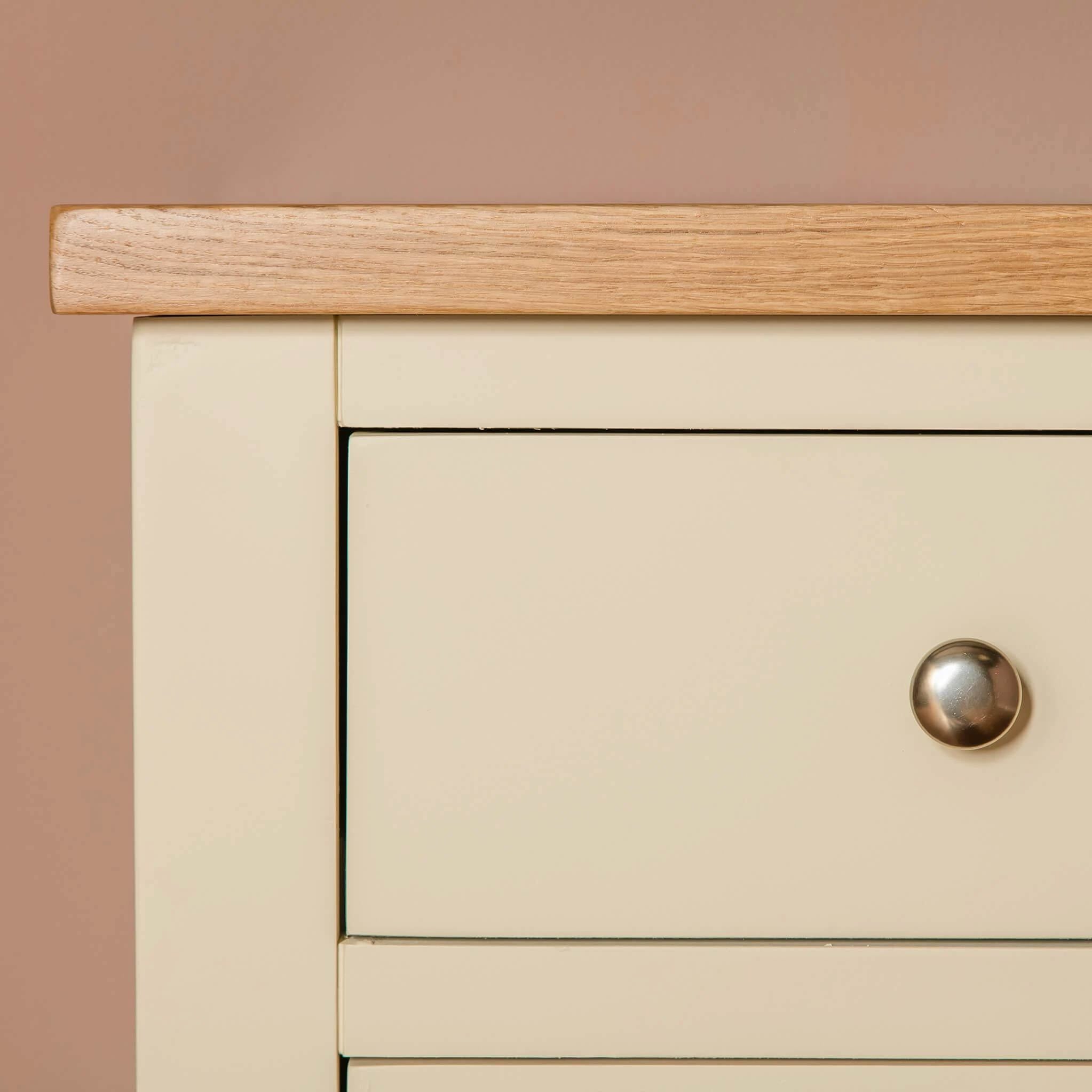 This Farrow painted furniture range is simply extraordinary value for money. Crafted with a quality oak contrasting top, the clean angled edges of each piece adds charm whilst the polished metal handles add to the contemporary painted design.