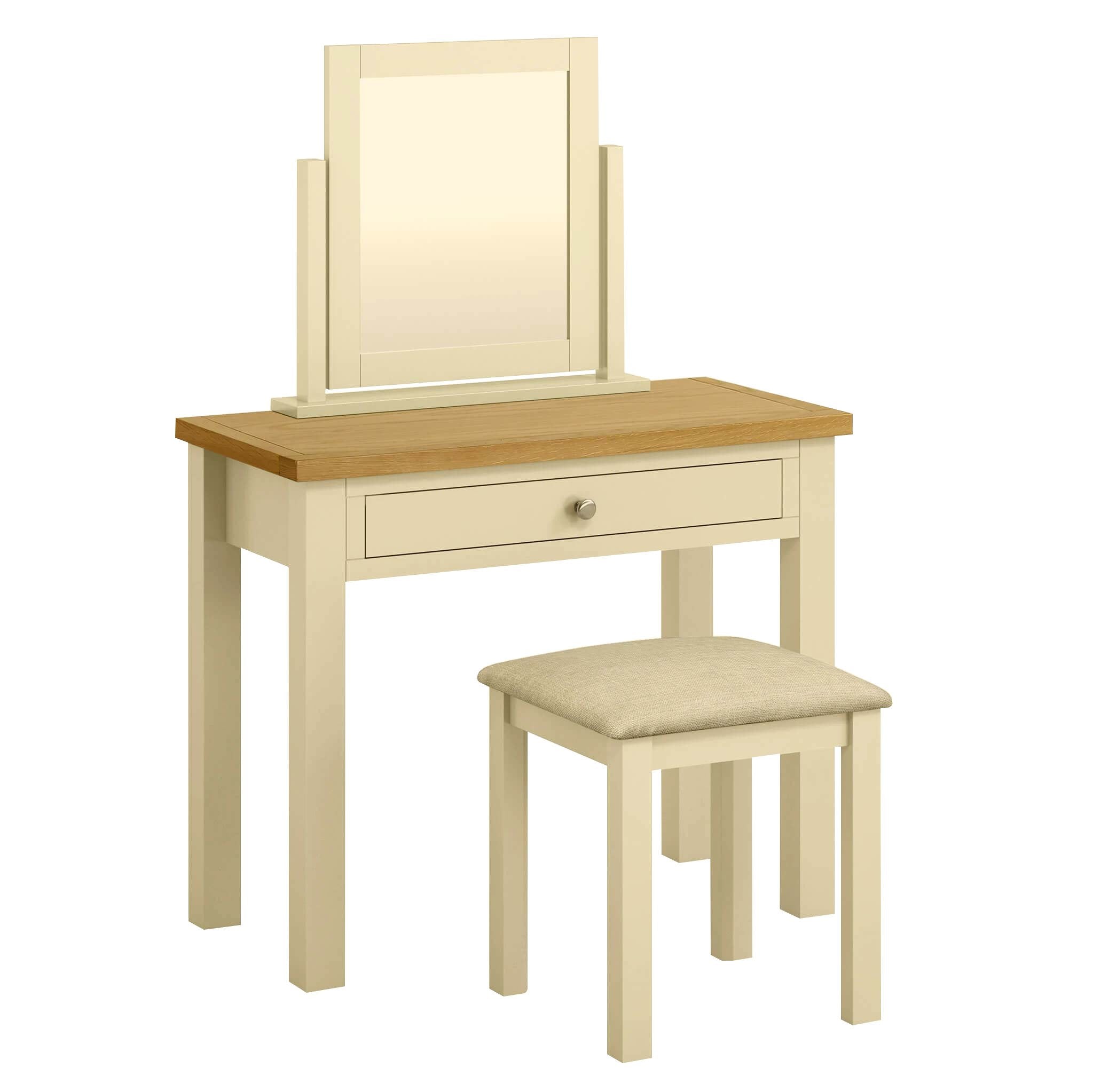 - This superb dressing table set includes a table, stool and vanity mirror - the perfect finishing touch to the bedroom.
