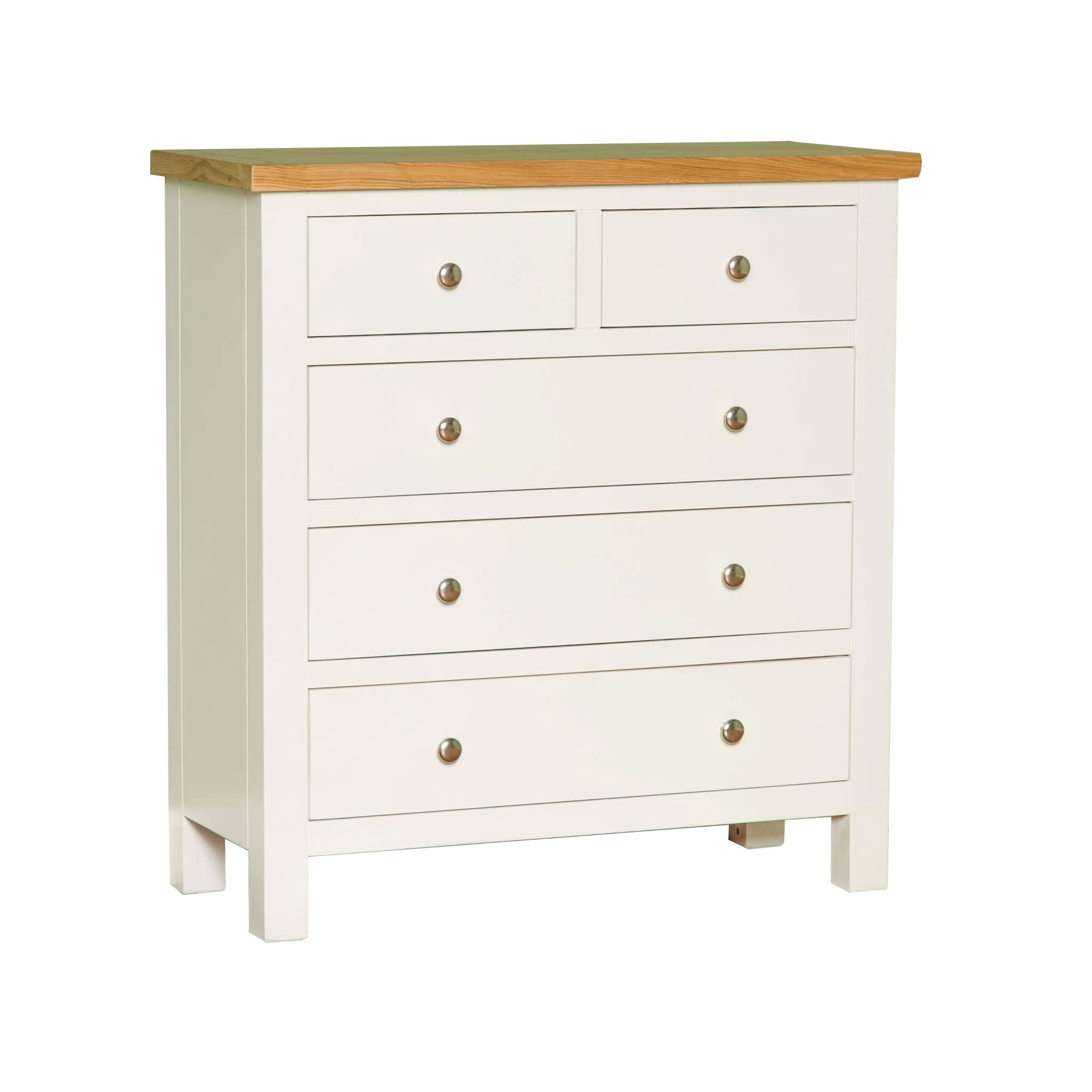• This five drawer chest of drawers will bring a generous amount of storage to the bedroom.