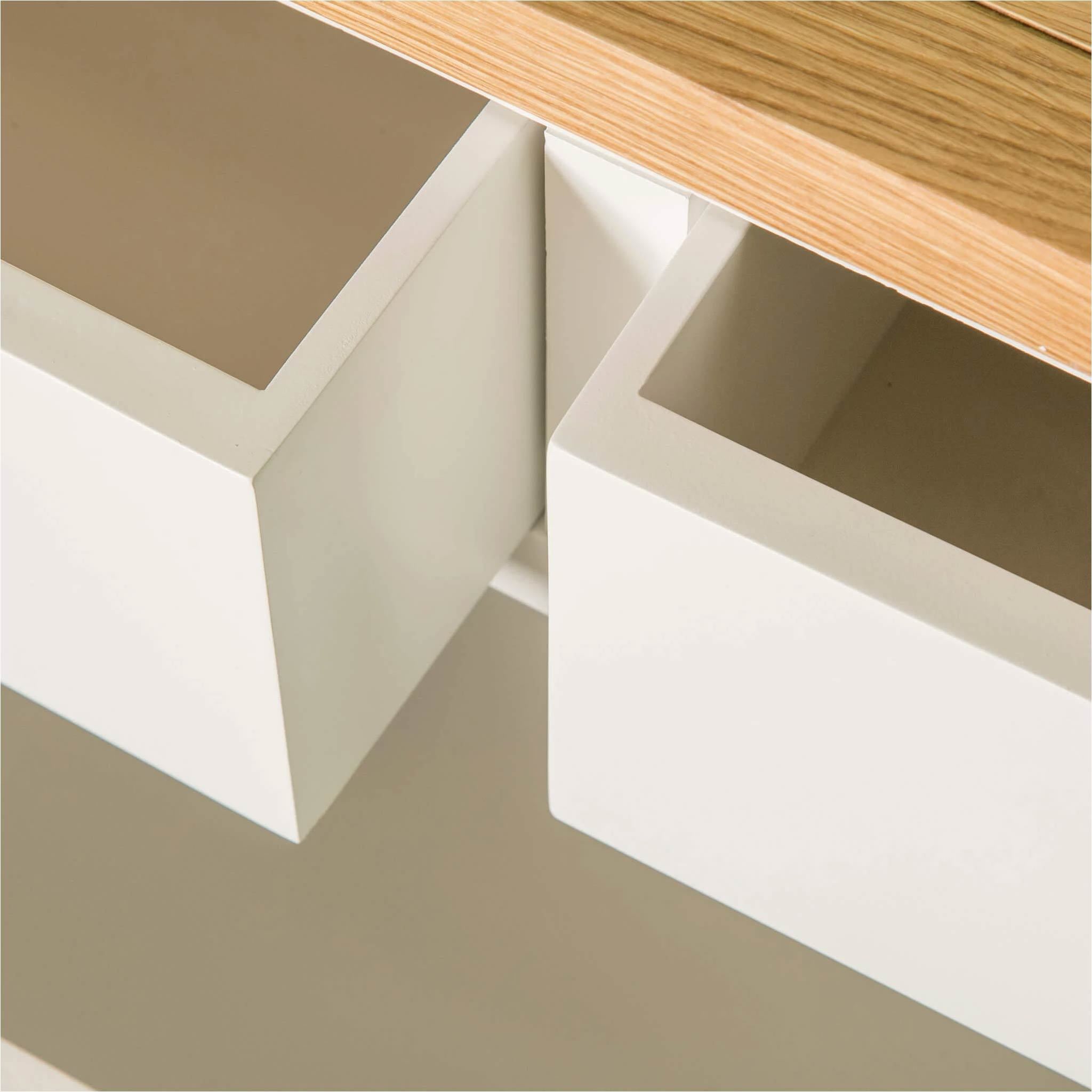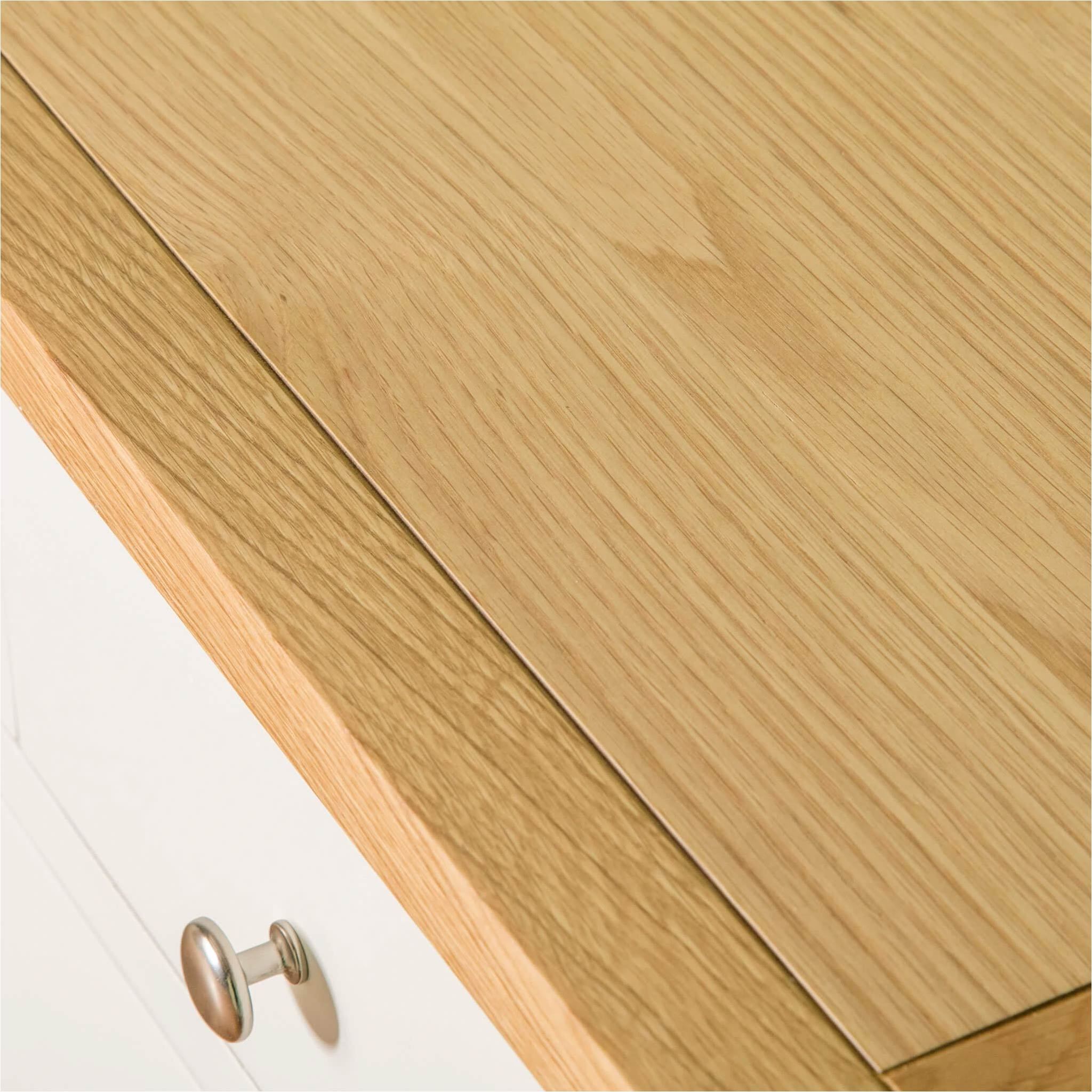 • Beautifully built of matt white painted solid wood with a lacquered real oak top.