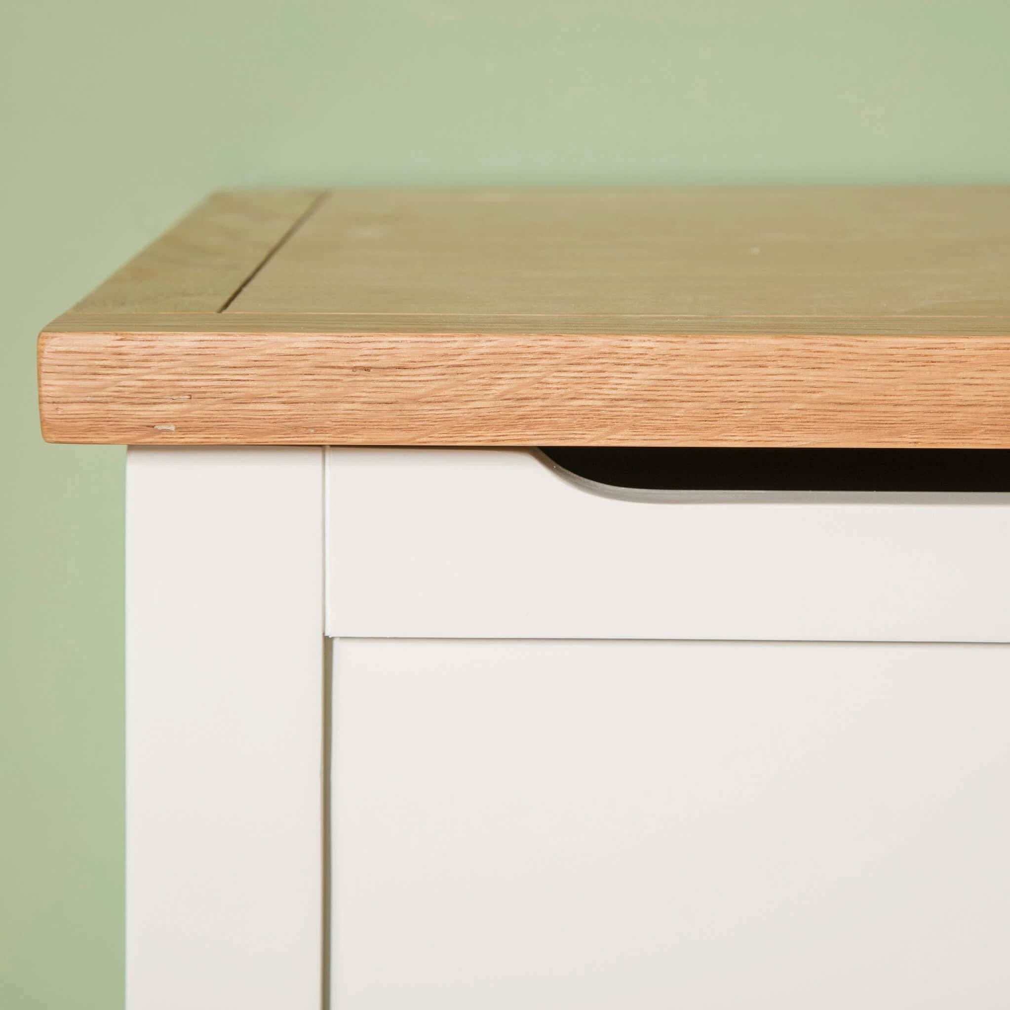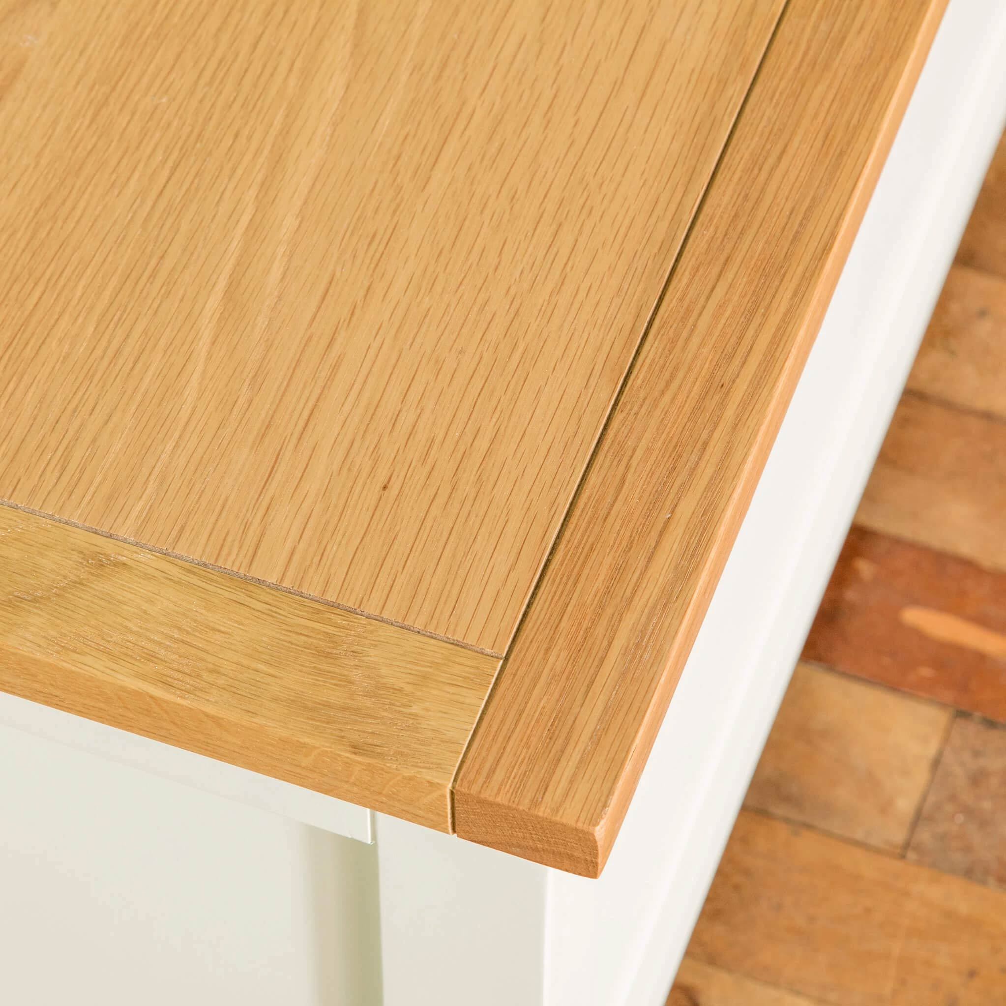 - Sturdily constructed from white painted solid wood with a lacquered real oak top.