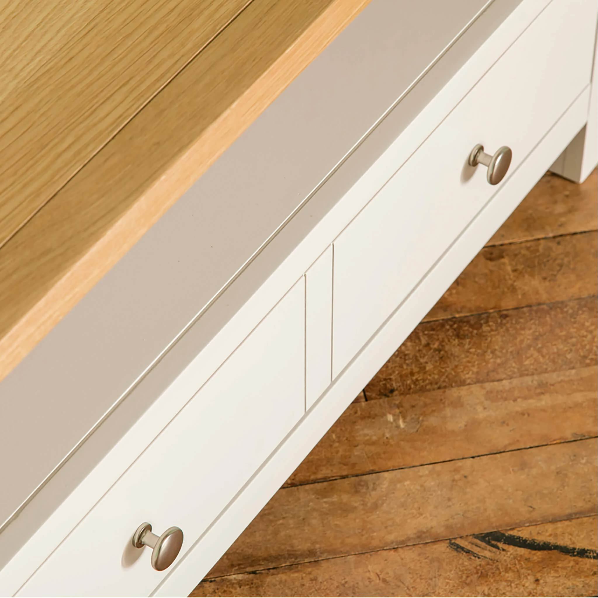 The Farrow Painted range is simply extraordinary value for money, crafted with a quality oak contrasting top. The clean angled edges of each piece adds charm whilst the polished metal handles add to the contemporary painted design. With contemporary style in mind the Farrow Painted furniture range has been designed to bring a beautiful modern country touch into your home at extraordinary prices. Browse through our existing ranges to piece together your perfect collection.