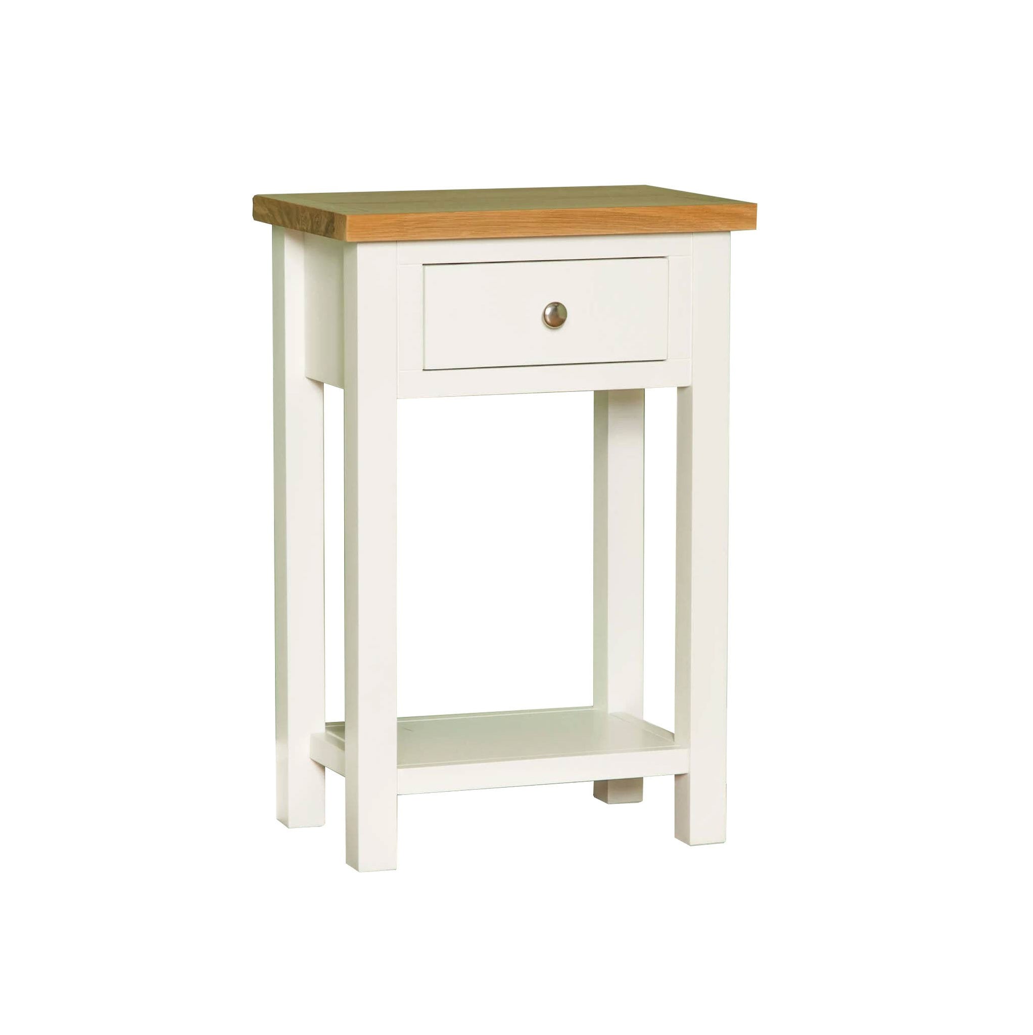 This Farrow painted telephone table is part of our best selling Farrow furniture range. Designed with a practical drawer above a shelf, the drawer is fitted with a round metal knob.