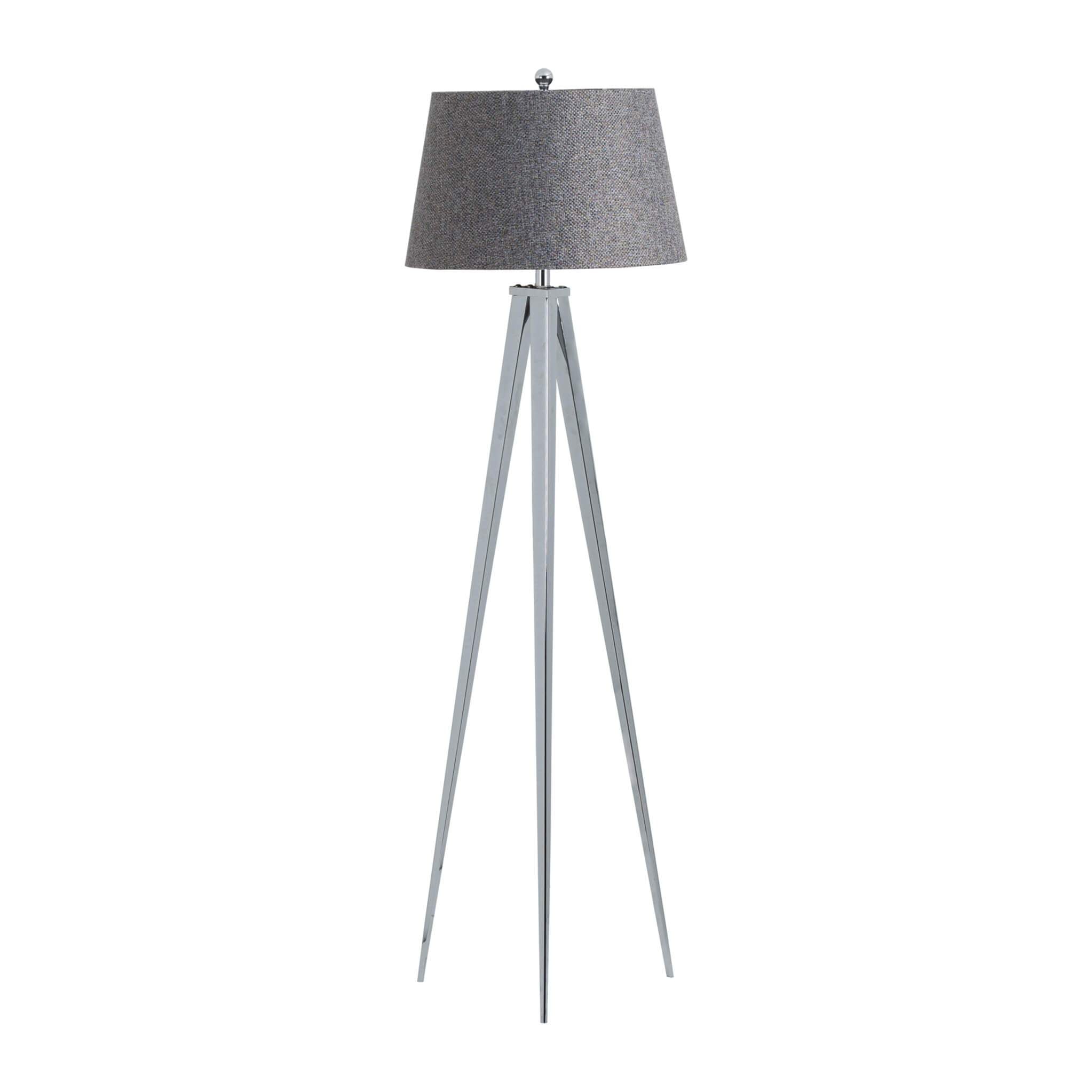 A contemporary floor lamp that will bring a modern flair to your home. The hugely popular tripod style, finished in silver really adds a modern touch to this lamp. The neutral grey lampshade fits with many interior colours & finishes and creates a beautiful additional to any home.