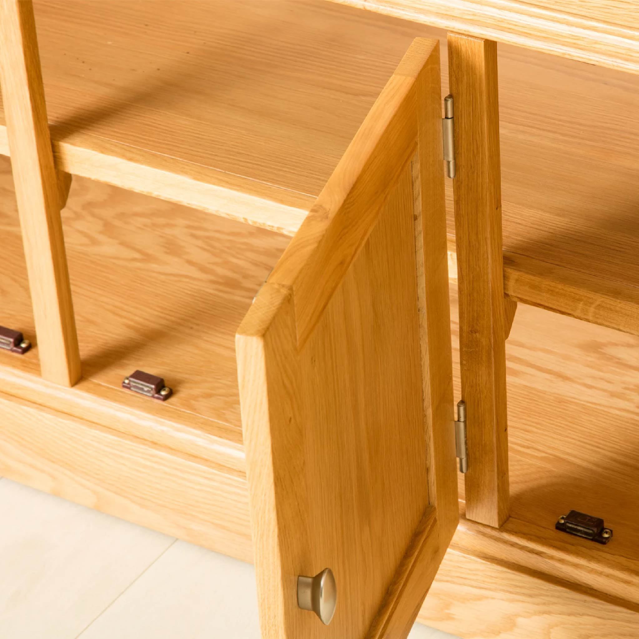 The Hampshire Oak range has been created with our manufacturers exclusively for Roseland Furniture due to customer demand. With the plinth base, this design sets the Hampshire Oak range apart from any other we offer. Finished in a satin lacquer with contemporary oval handles, it is suitable for any home and will add a classic design touch to any room.