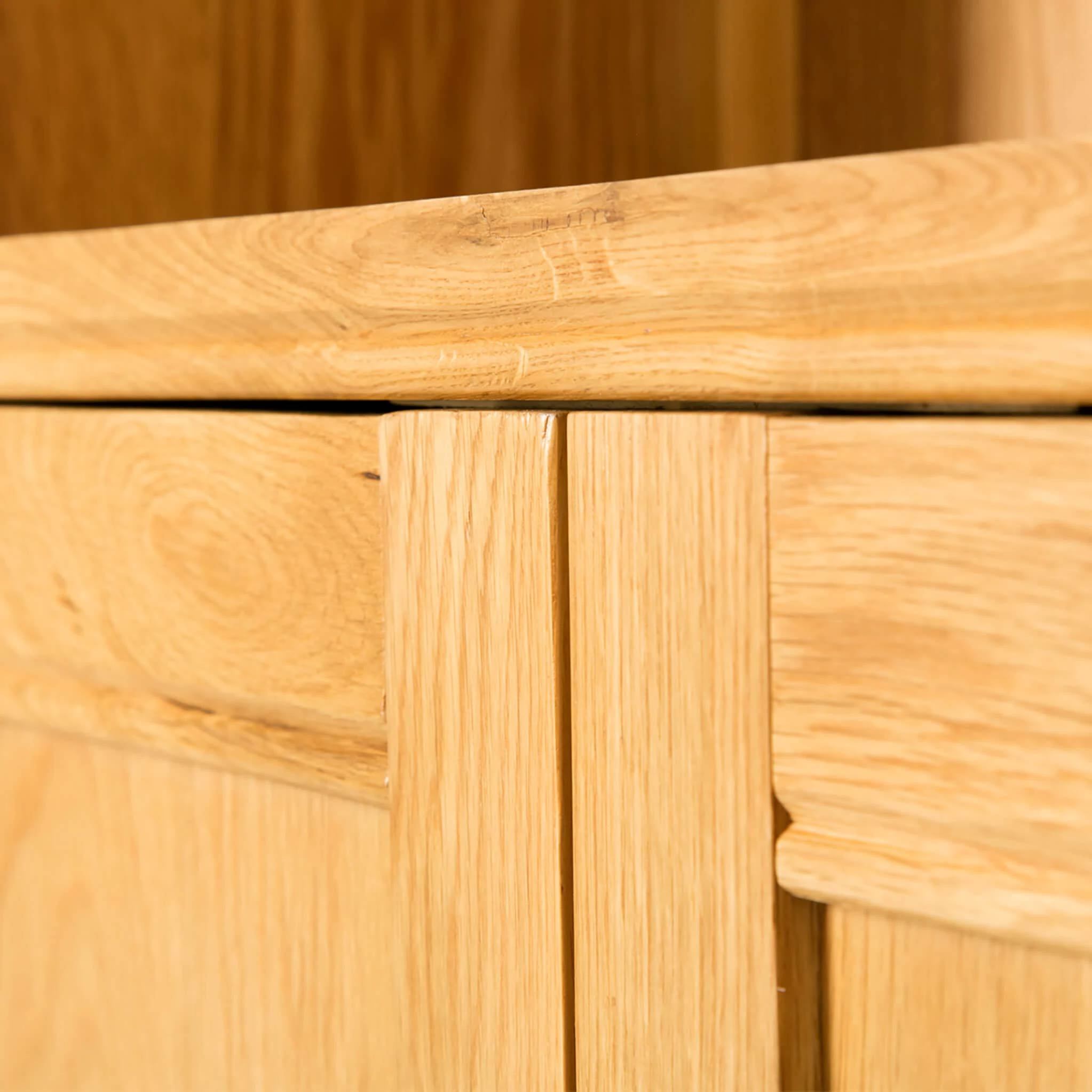 The Hampshire Oak range has been created with our manufacturers exclusively for Roseland Furniture due to customer demand. With the plinth base, this design sets the Hampshire Oak range apart from any other we offer. Finished in a satin lacquer with contemporary oval handles, it is suitable for any home and will add a classic design touch to any room.