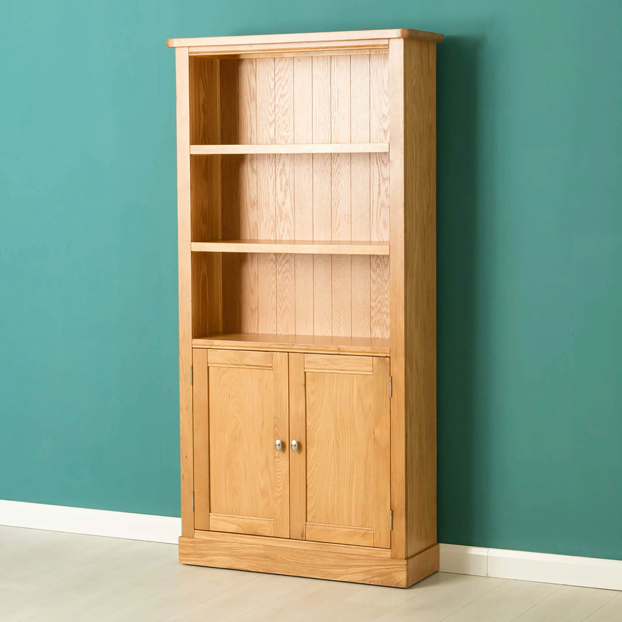 This unique display cabinet is built from oak, oak veneer and features pine for its internal sections and has been designed to provide the perfect storage platform. Its light oak modern colour is highly desirable, combined with simple metal handles. The display cabinet features a large cupboard at the bottom of the cabinet for extra storage.There are 3 large shelves at the top providing a vast amount of space to display your items.