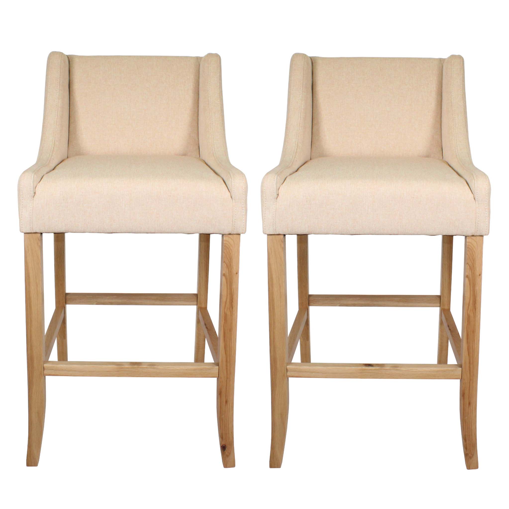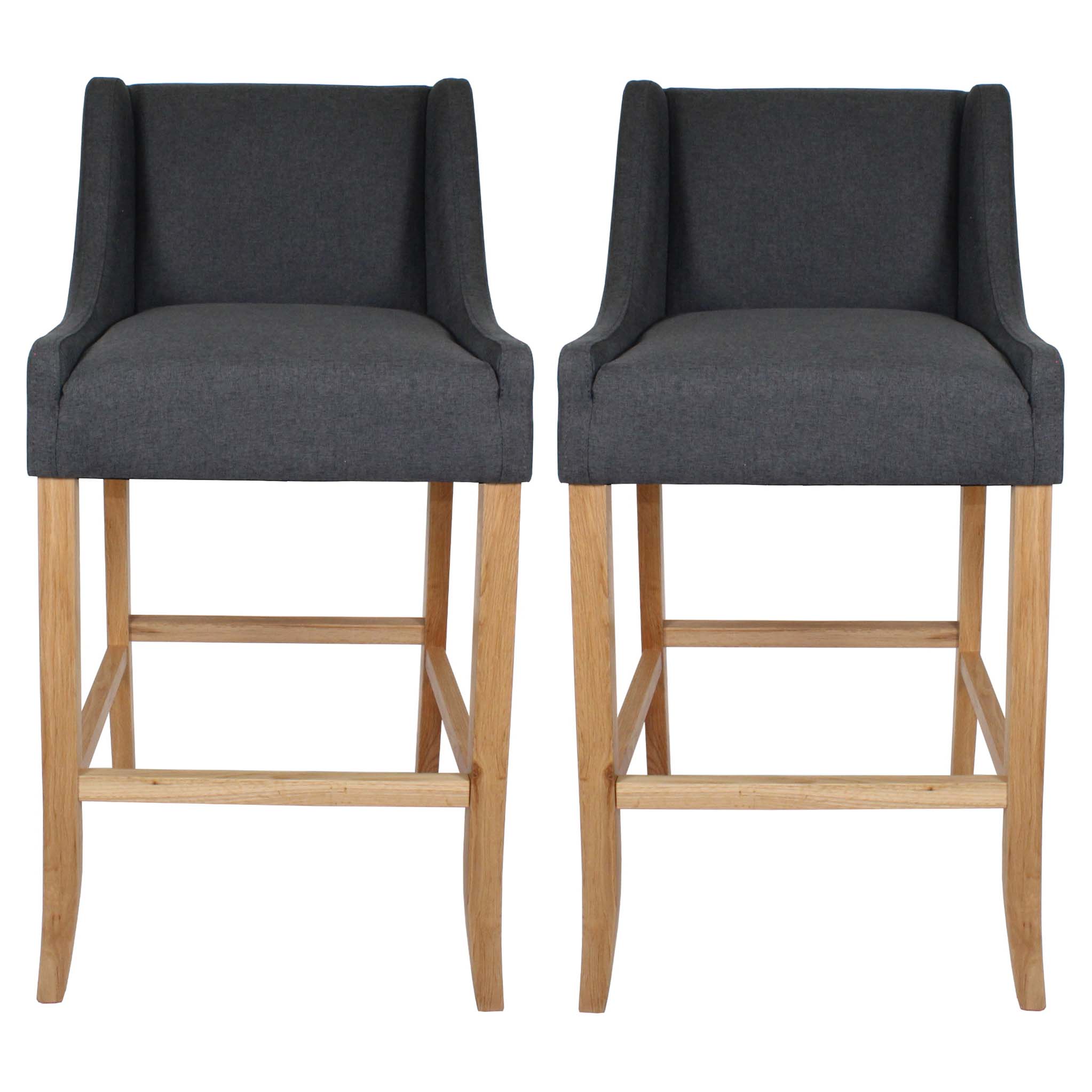 These great looking bar stools come in a set of two. They have a deep comfortable padded seat and back with elegantly sloping arms and long sleek oak legs with crossbars near the base. These stools will make a stylish addition to any room, and with the colour options of biscotti beige or graphite grey, you only have to choose which colour best suits!