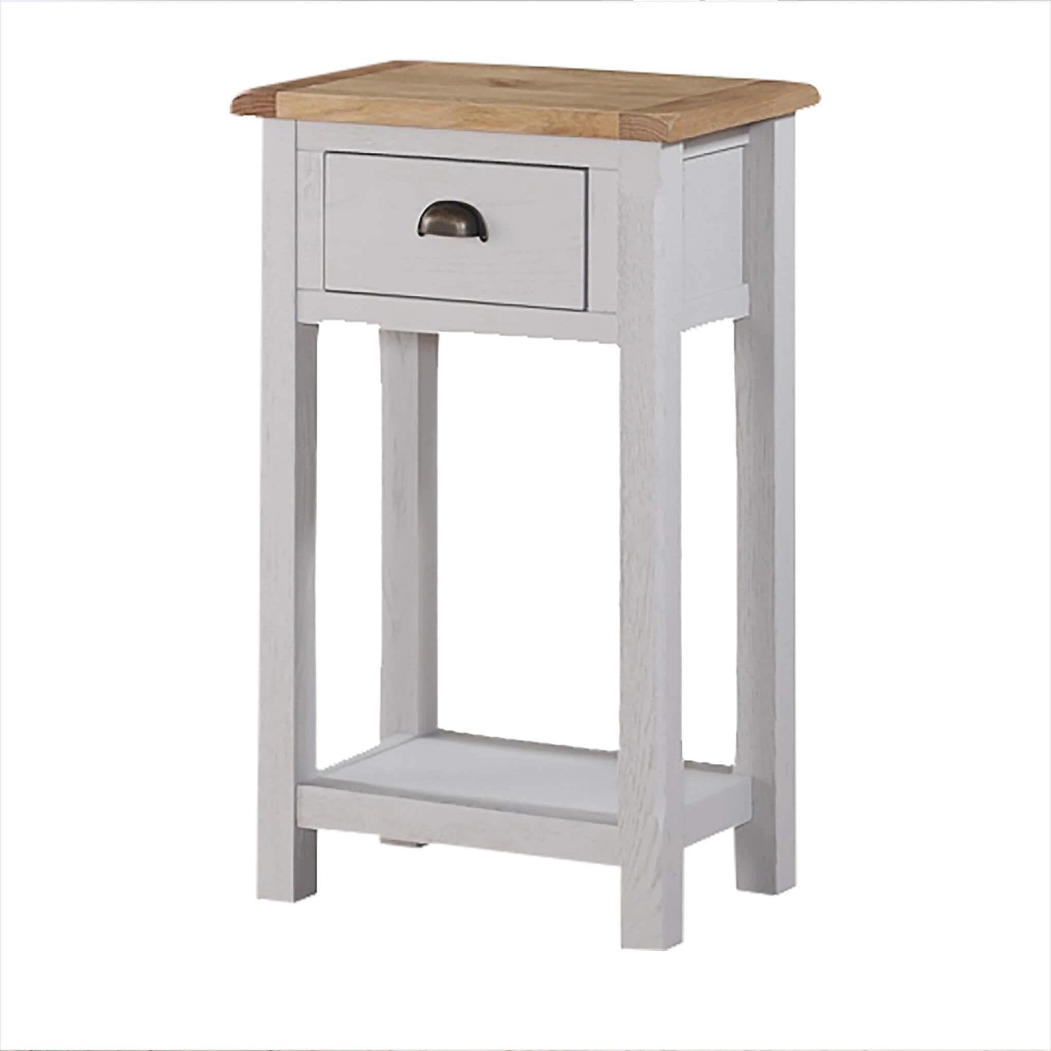 A smaller version of the Kilmore Painted Large Hall Table, the Kilmore Painted 1 Drawer hall table makes an attractive addition to any number of rooms in the home. The large drawer provide a valuable and practical storage space, while the flat top area makes a great space to display treasured photos or a vase of freshly cut flowers. The simple, modern design that echoes throughout the Kilmore Painted range means that these pieces blend in with many interior design schemes.