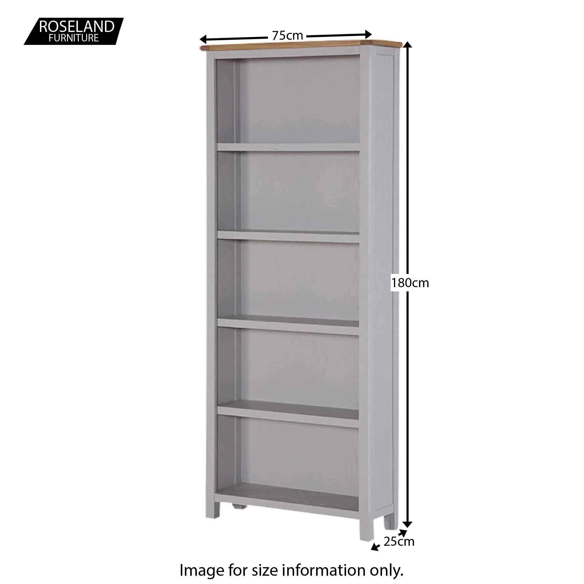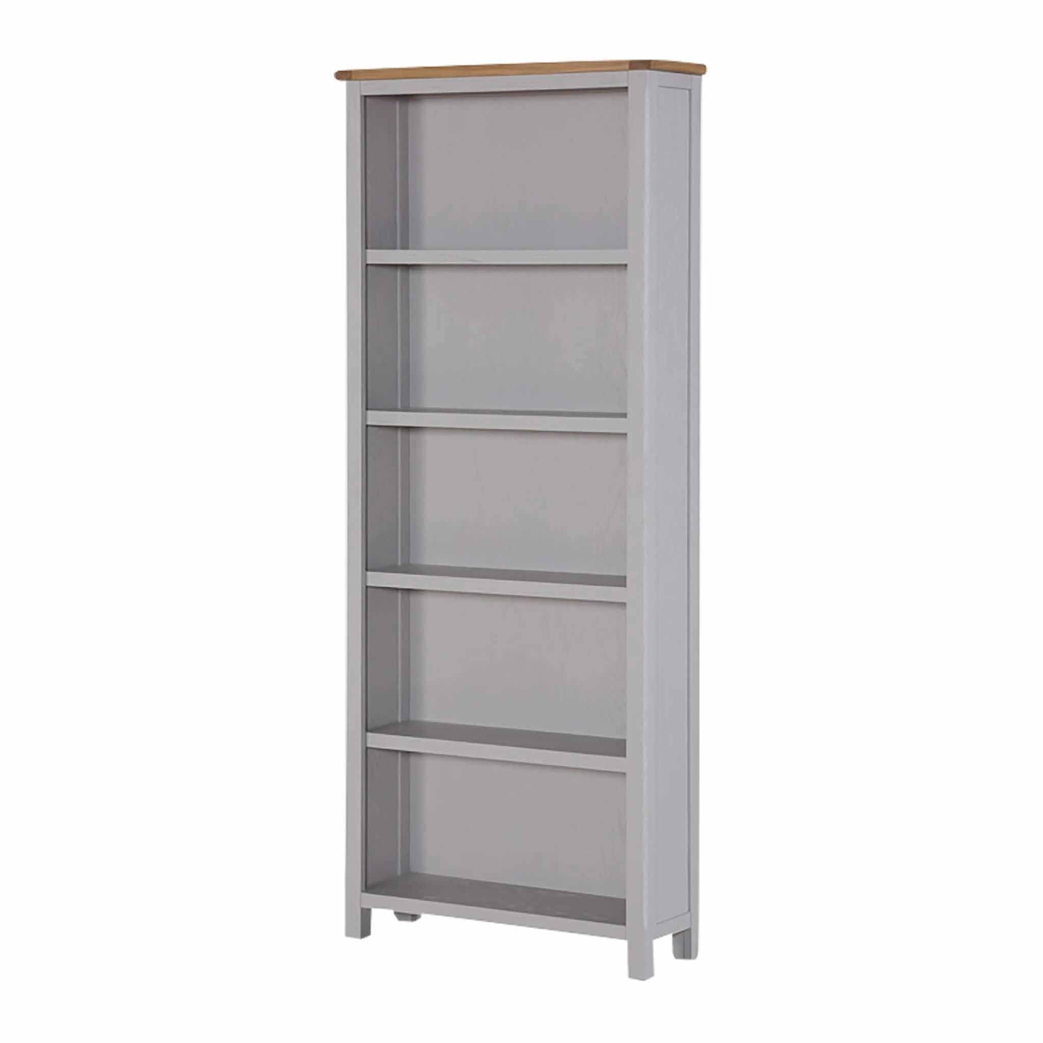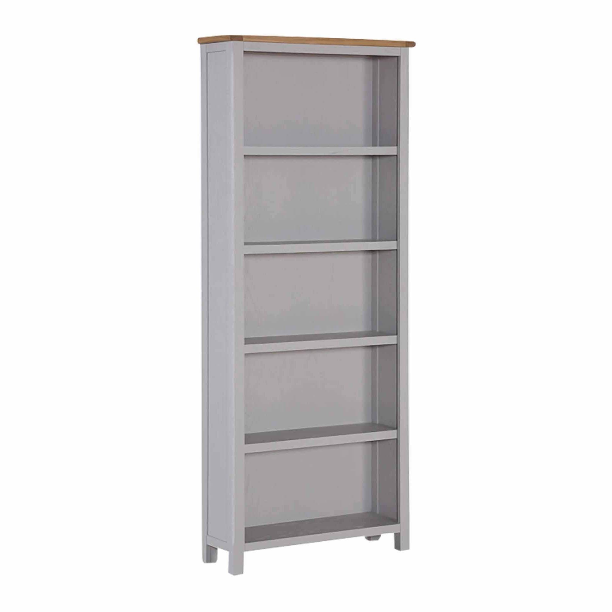 The larger of two bookcases available within the Kilmore Painted range of living & bedroom furniture. Featuring five adjustable shelves, there is plenty of space for that growing library. This bookshelf would look beautiful in any home or office and would be a lovely addition to any bedroom. The contrasting oak tops combined with the Spanish White body makes a truly attractive item.
