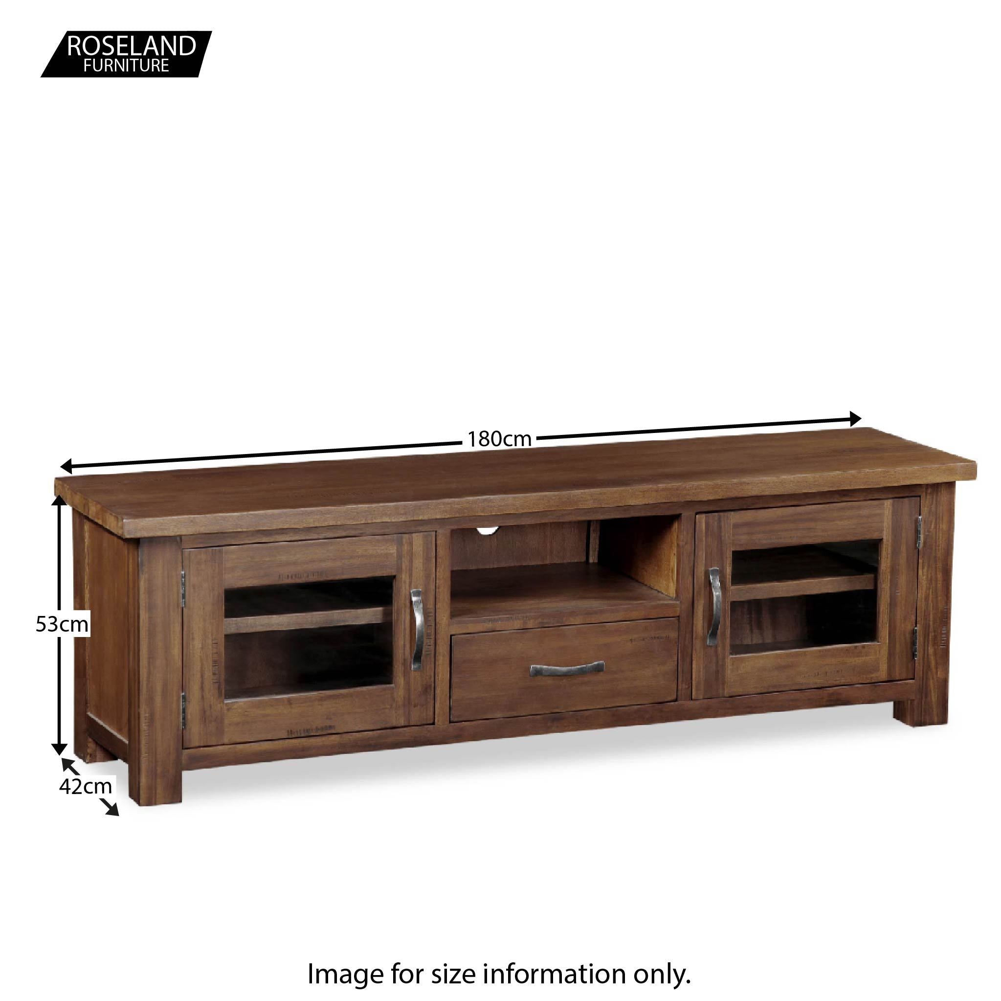 The Ladock Large TV stand is a generous 180cm in length meaning it's great for the largest of TVs. It's got plenty of storage and its bold look will make it a characterful addition to the living room.