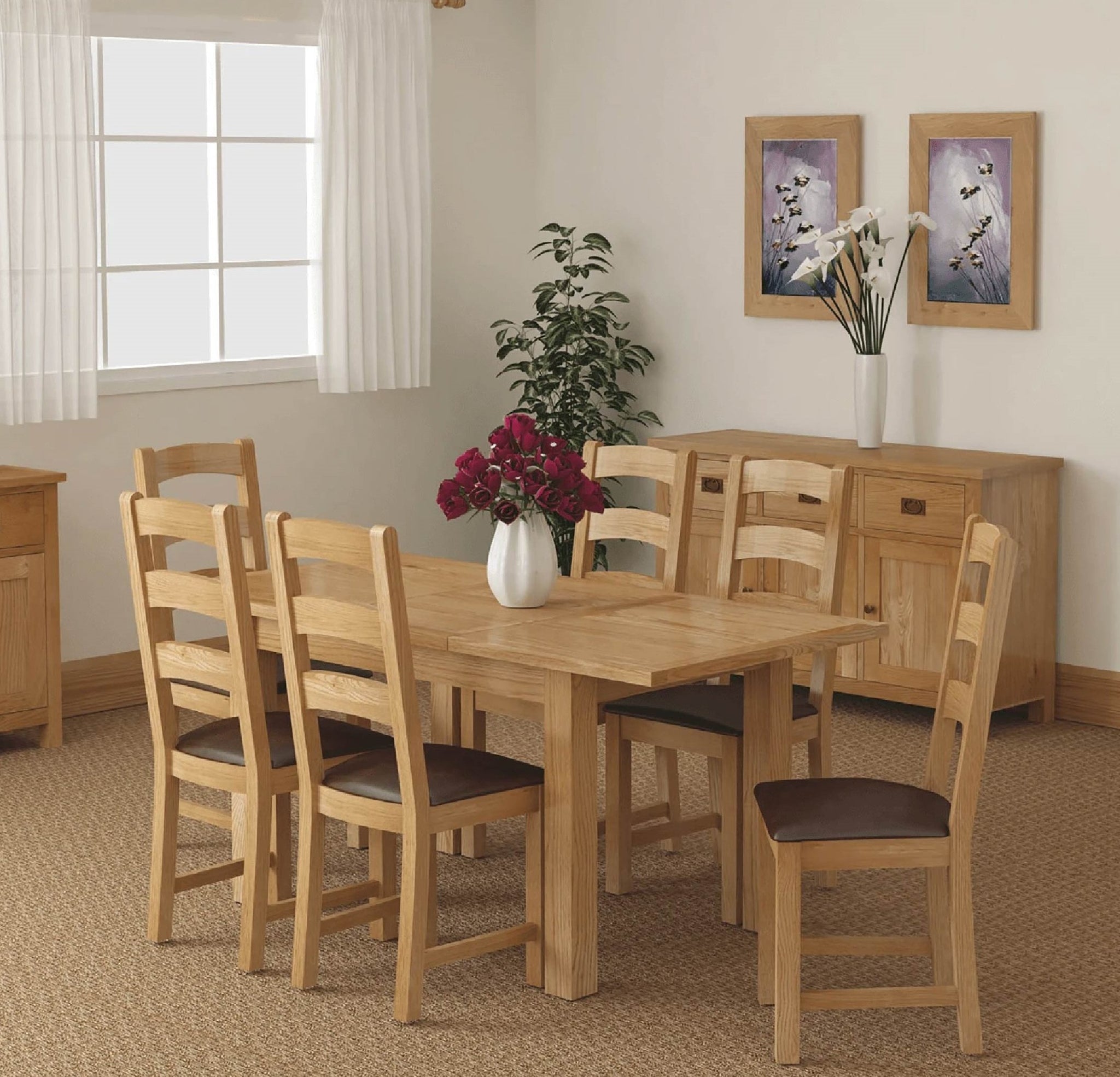 Our Lanner oak compact extending table is crafted from high quality oak and can add a touch of rustic charm to your dining/living area. When closed the table top is doubled up and can quickly be flipped over and slid into place to create a table twice the size.