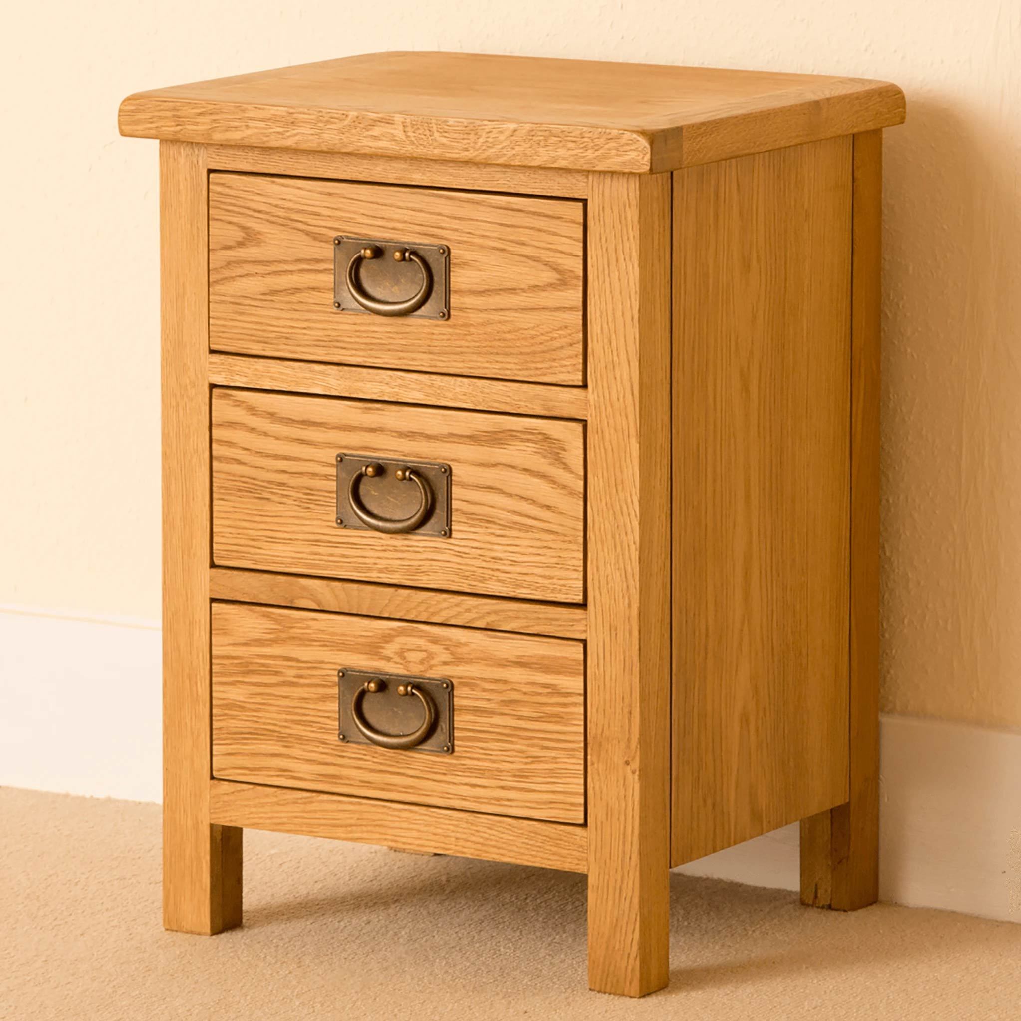 One of the top sellers here at Roseland Furniture, our Lanner Oak bedside table is crafted from high-quality oak and provides plenty of storage with its 3 drawers. The rounded edges of each piece give a stunning rustic look that adds charm to your room. All drawers within the Lanner range are crafted with dovetail joints.