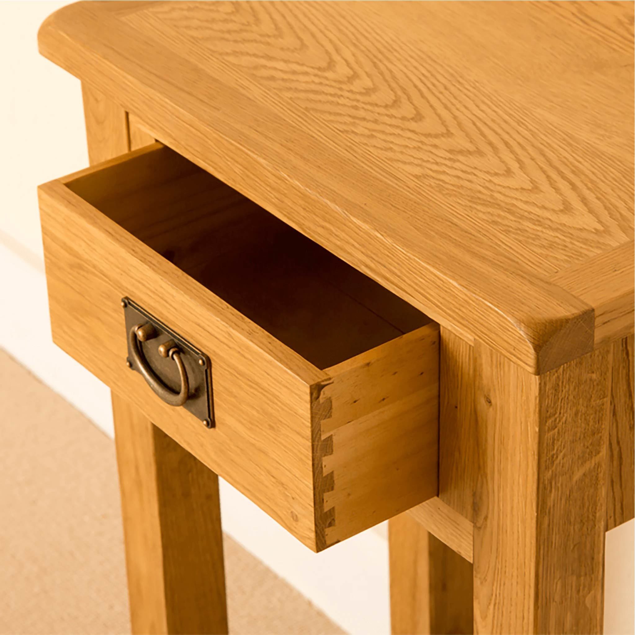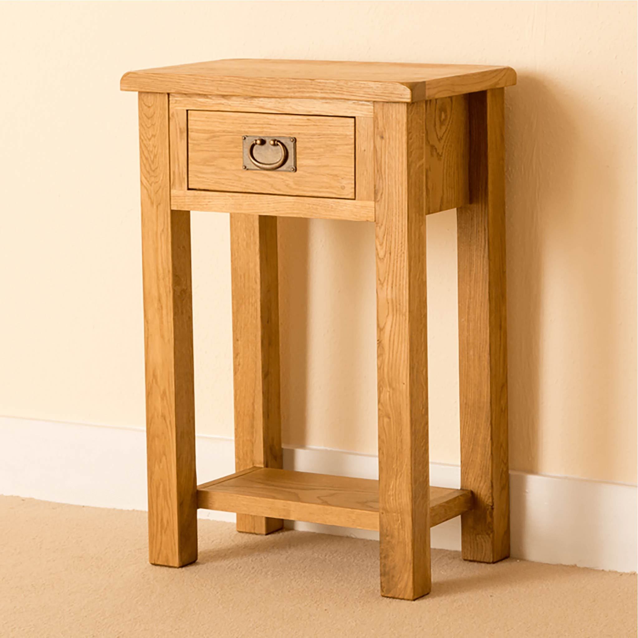 Our Lanner Oak telephone table is suited to any living area and very popular for narrow hallways. The drawer and lower shelf provide valuable additional storage space, great for those little bits and pieces you always mislay! The rounded edges of each piece give a stunning rustic look that adds charm to your room. All drawers within the Lanner range are crafted with dovetail joints.