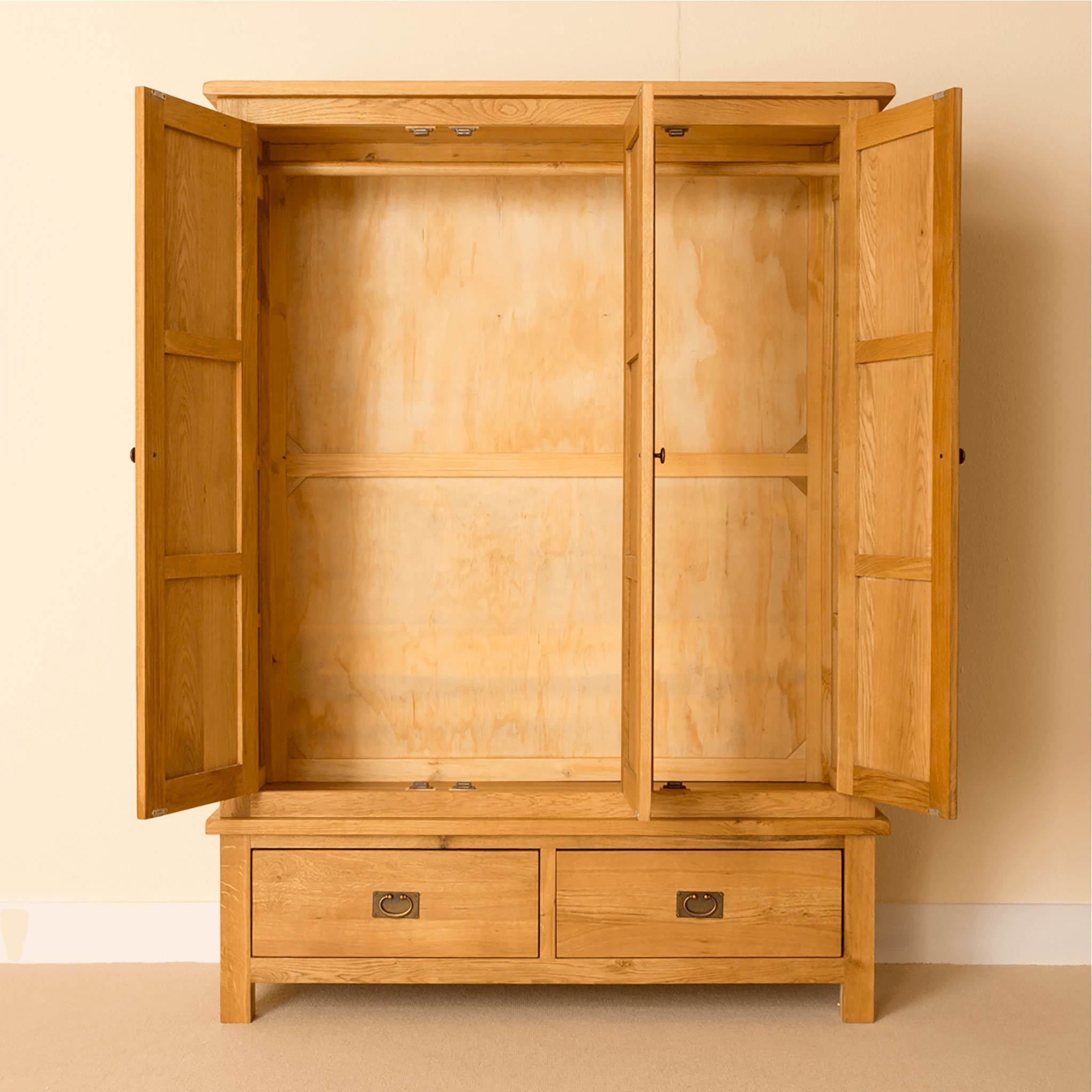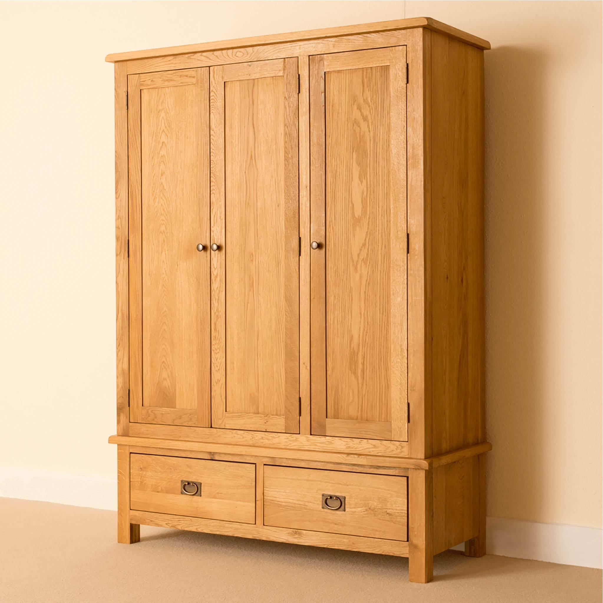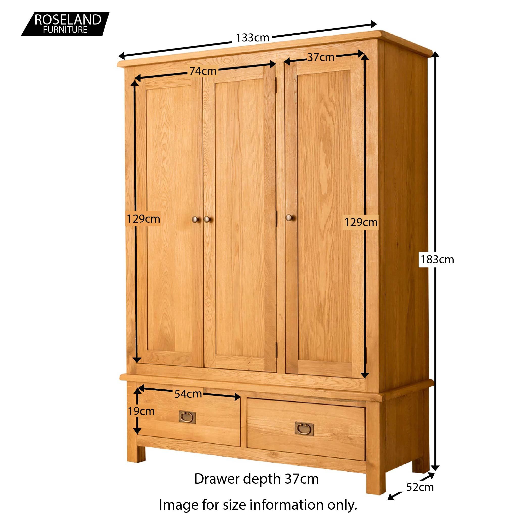 Our Lanner Oak triple wardrobe is crafted from high-quality oak and provides hanging space as well as practical storage with two drawers below. A relatively large item, it makes a great focal point for a room while the rounded edges of each piece give a stunning rustic look that adds charm to your room. All drawers within the Lanner range are crafted with dovetail joints.