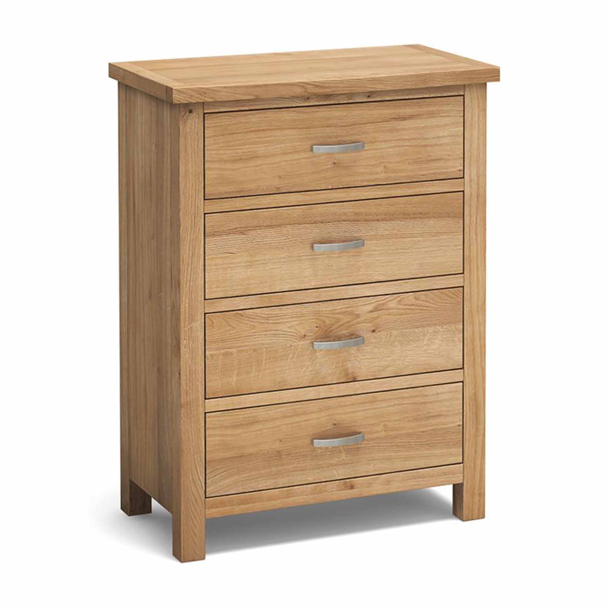 - This quality 4-drawer solid oak chest of drawers will bring a generous amount of storage to the bedroom.