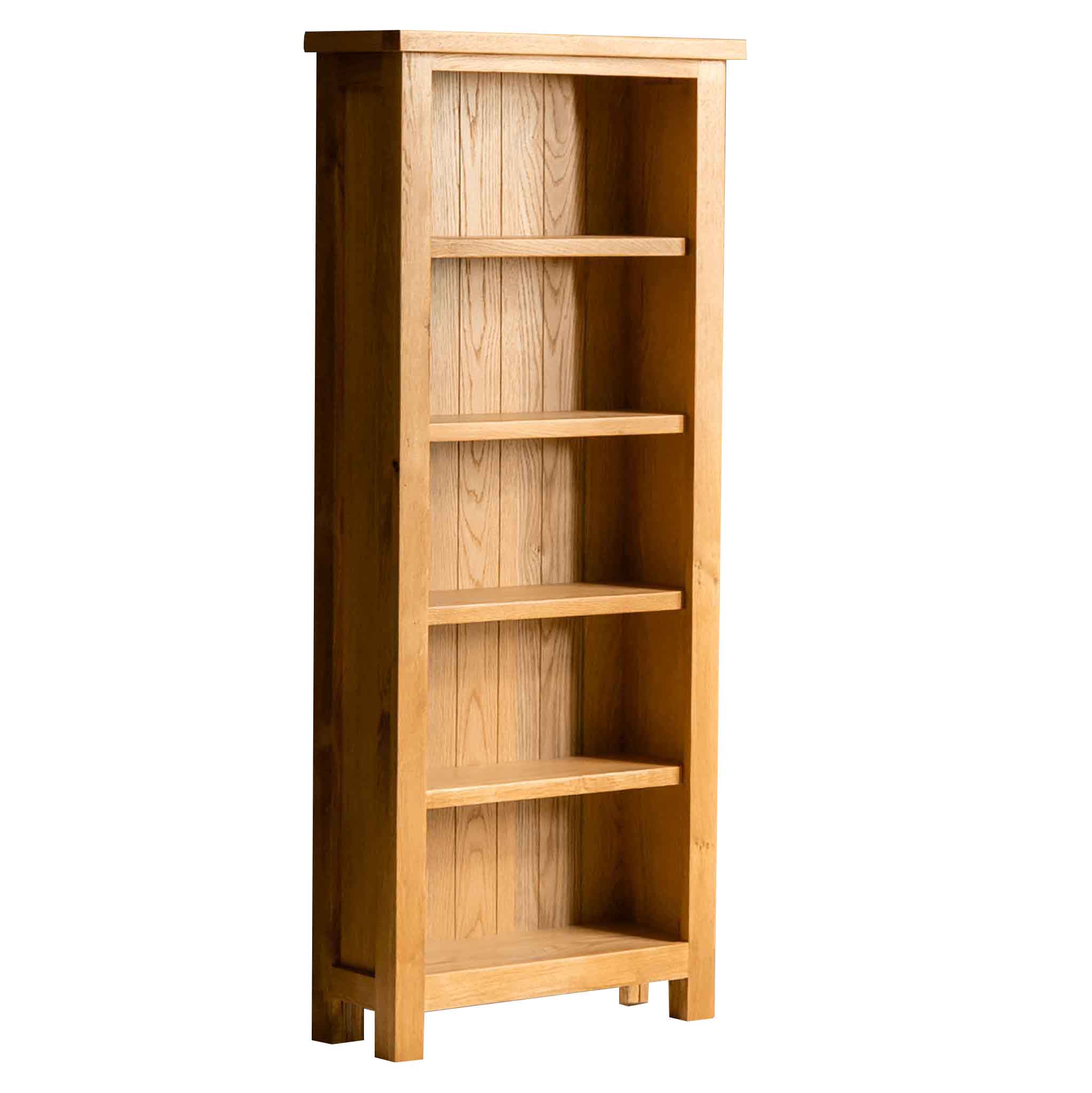 - This 140cm light oak slim bookcase is a great addition to the home - it offers a good amount of shelf space.