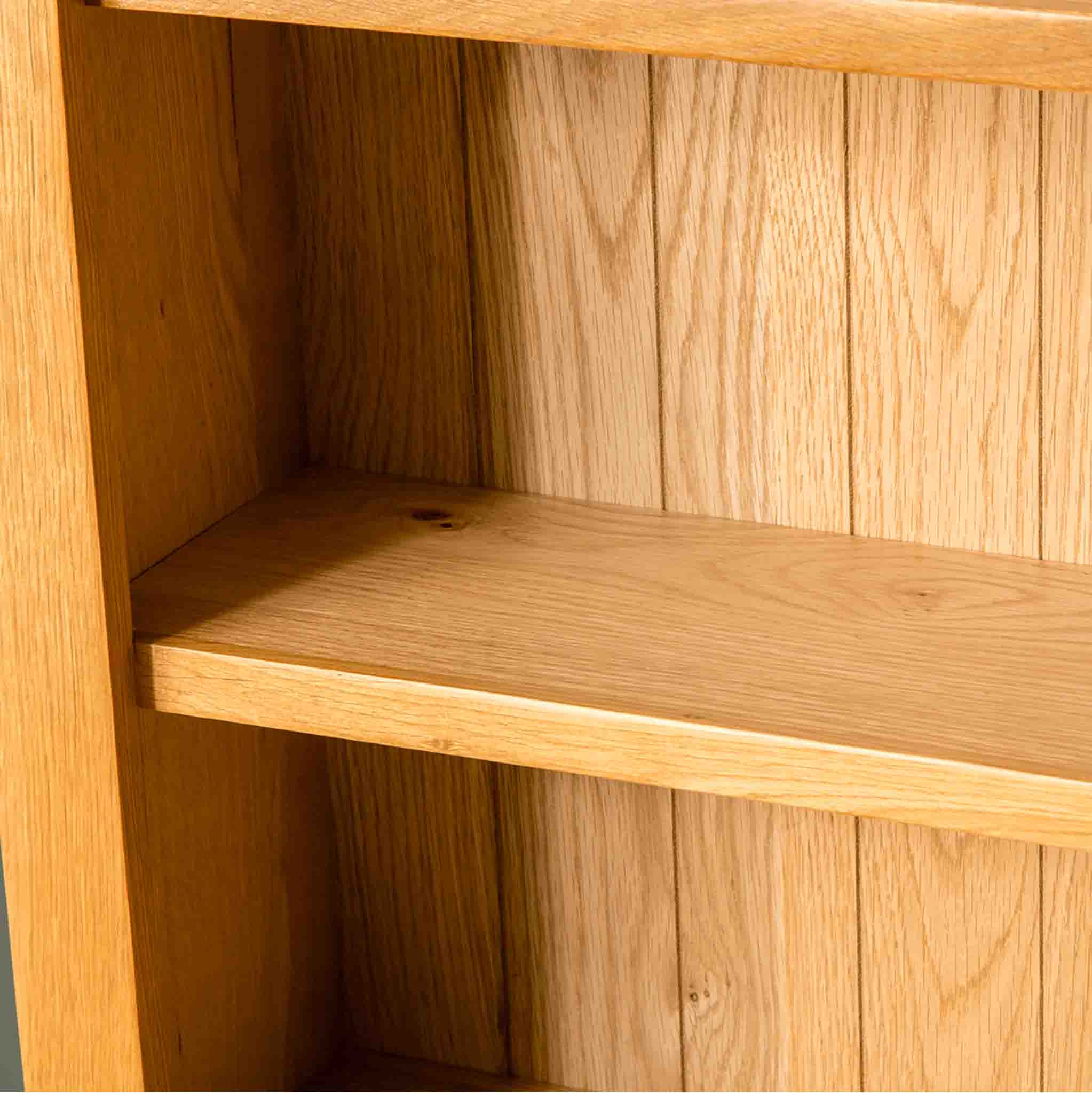 - It's a sturdy shelving unit - beautifully constructed from solid oak, solid wood, and finished in a lacquered real oak top.