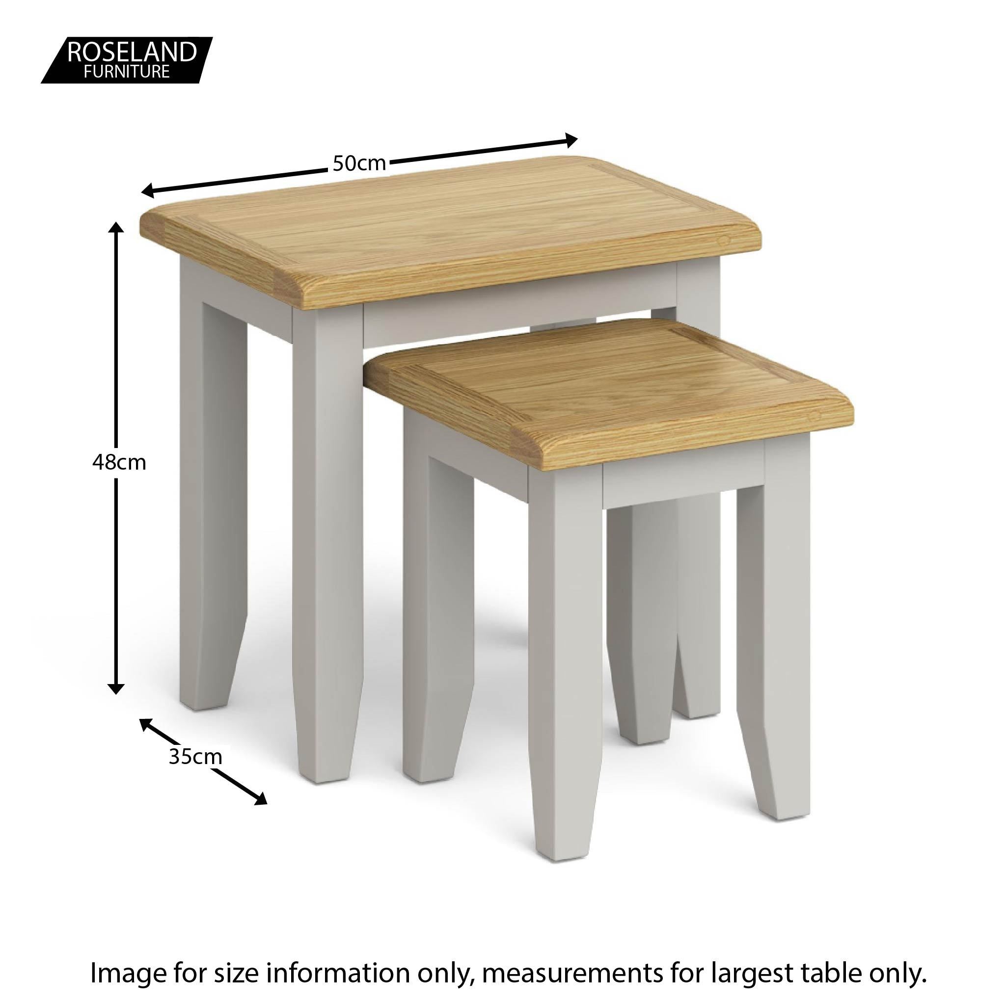 • Nest of two grey tables with real oak tops.