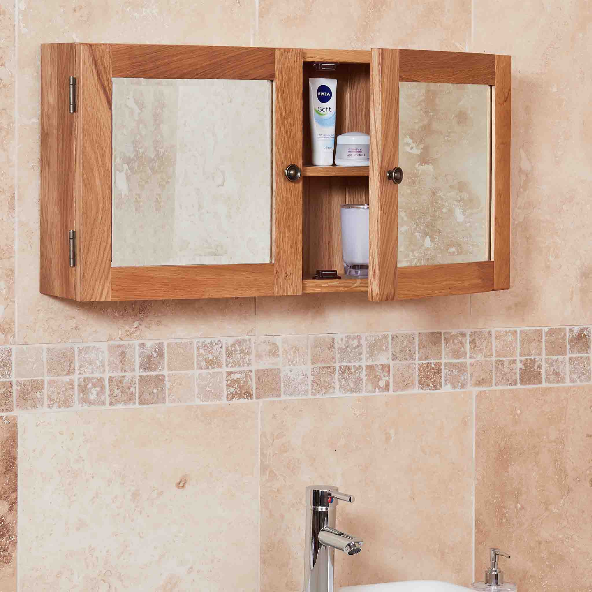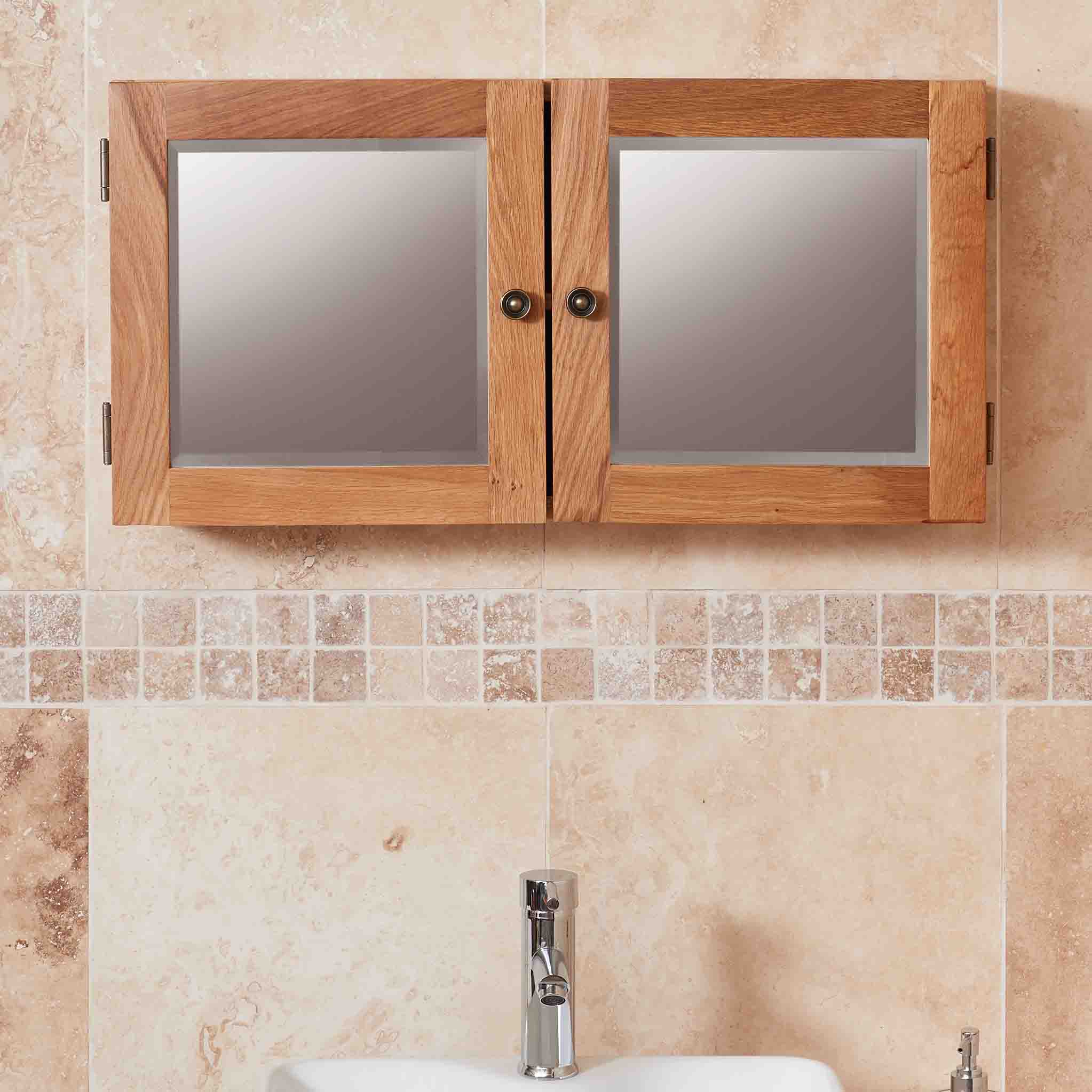 Mobel Oak Bathroom Mirrored Double Door Cabinet